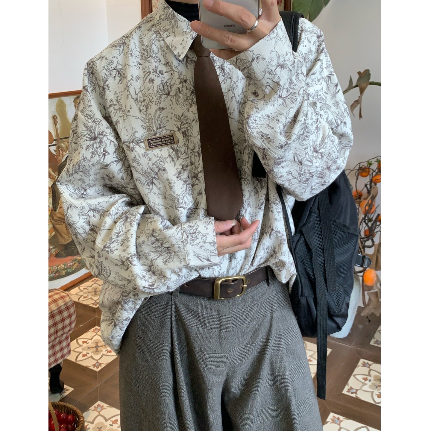 女春秋冬新款 衬衫 外搭外套上衣学院风翻领Polo衬衣 复古长袖 美式