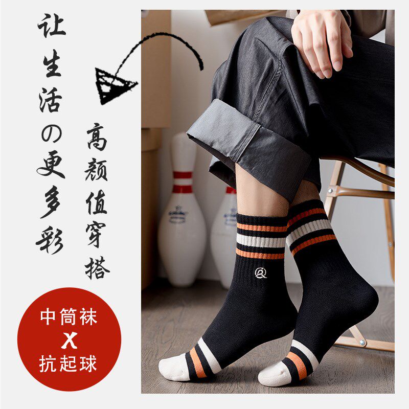 跨店满300减30元 袜子纯棉中筒袜M春秋长筒袜学院风篮球袜 专区男士