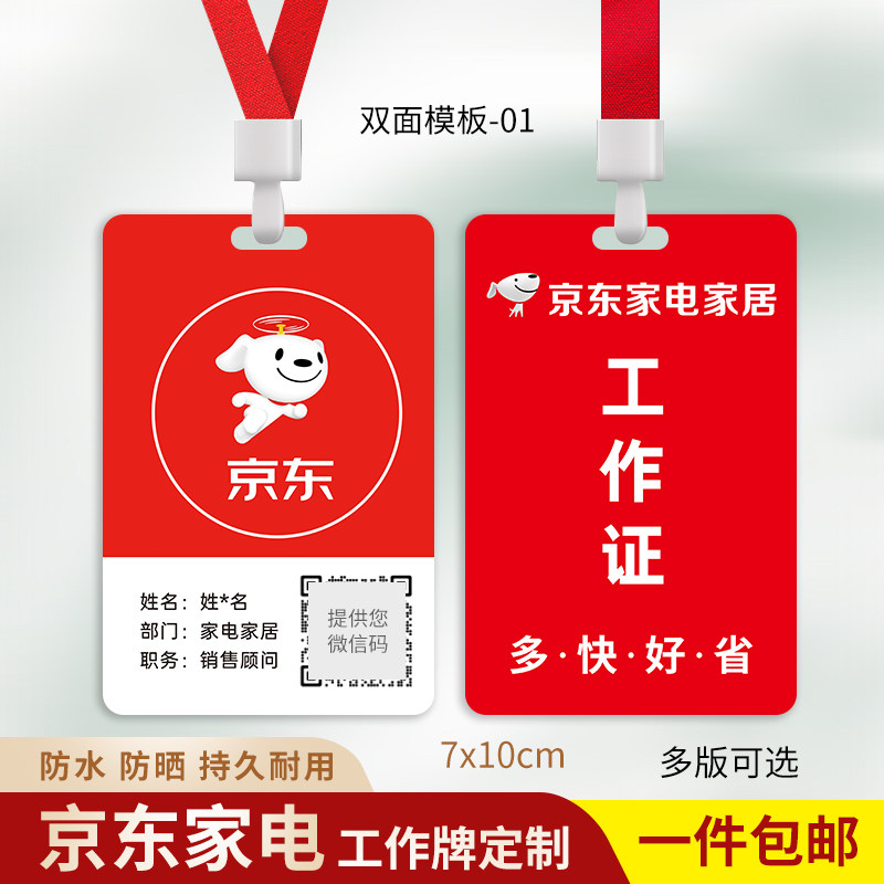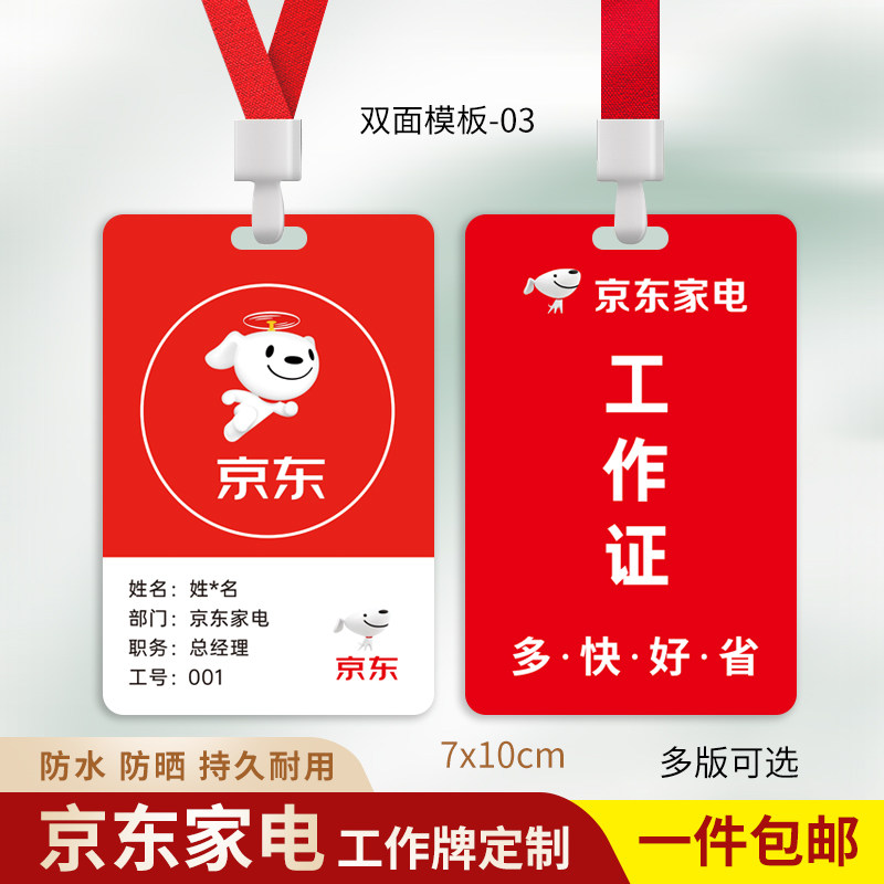 京东家电工牌京东外卖工作证京东家居挂牌地推员工胸吊牌定制