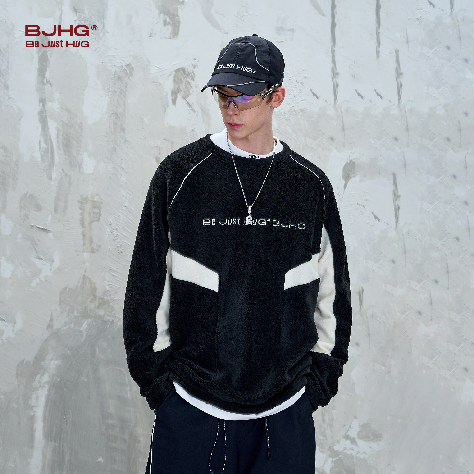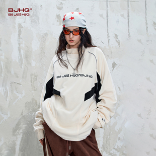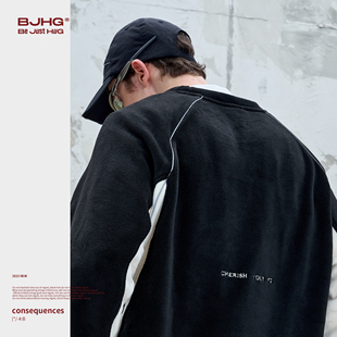 T恤女 秋冬休闲内搭情侣长袖 BJHG不计后果 撞色拼接摇粒绒卫衣男款