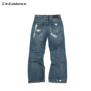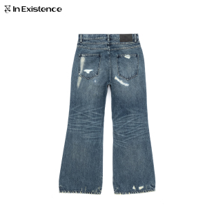 存世25FW「蕴」磨损补丁破坏手缝针刺子微喇牛仔裤 EXISTENCE