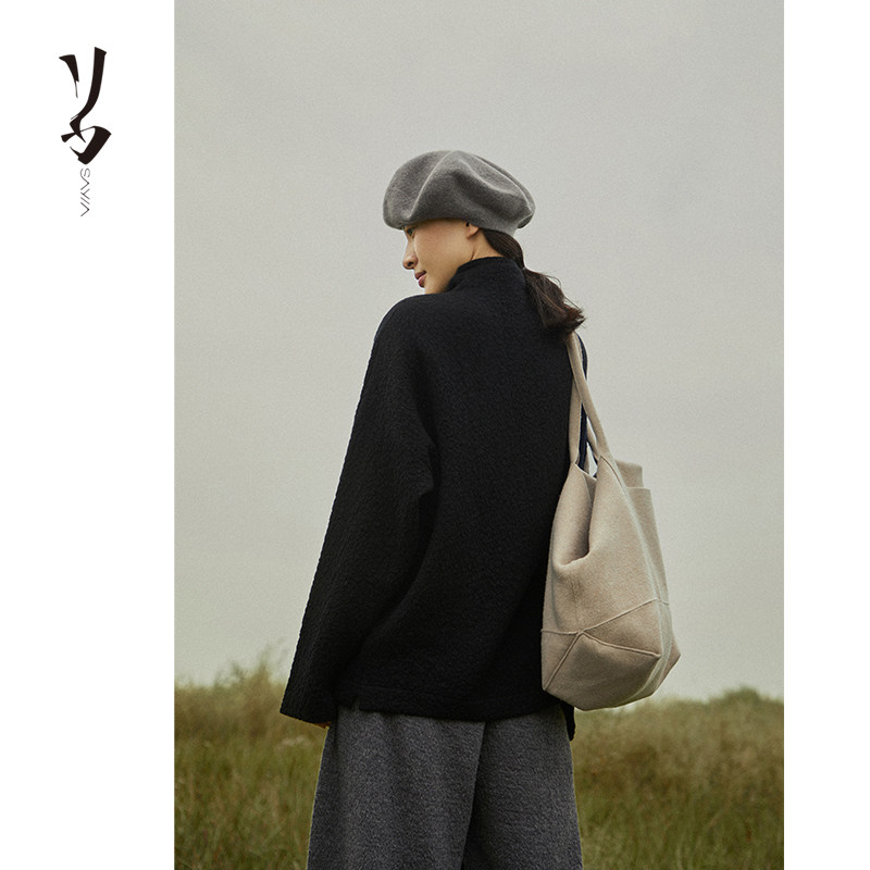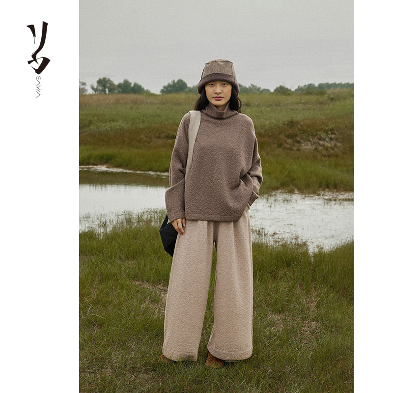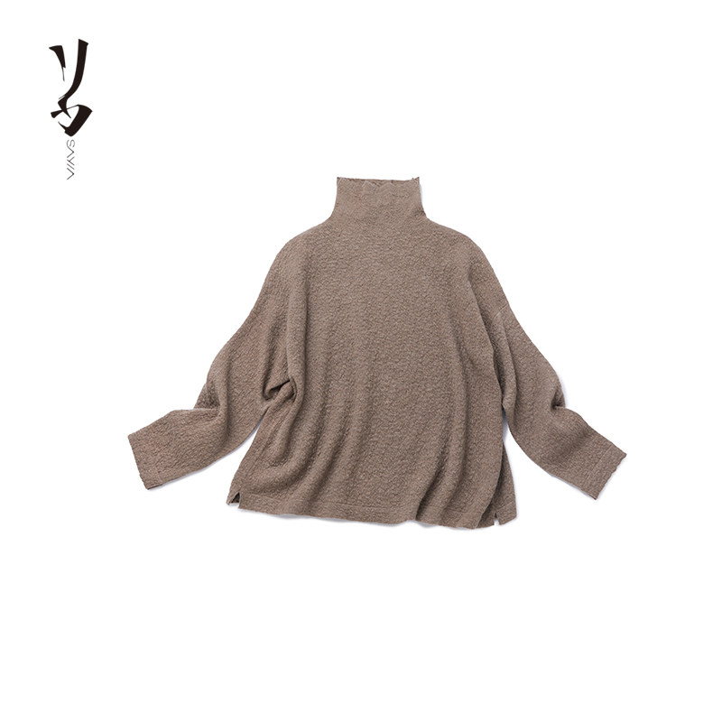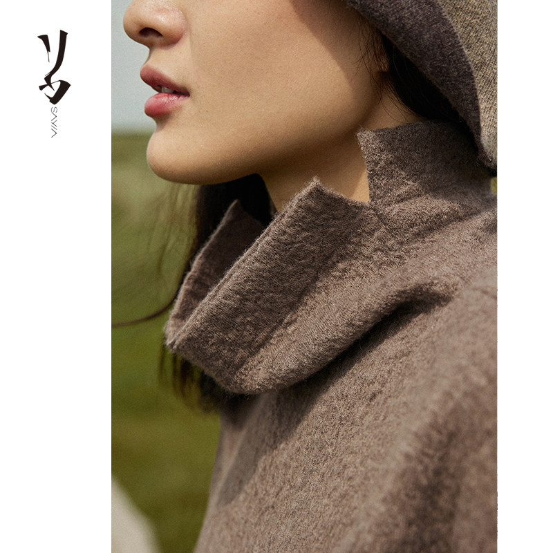 波纹空气层精纺100支羊绒一体中高领套头上衣 幻 宽松 Say