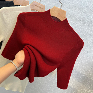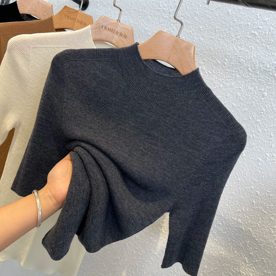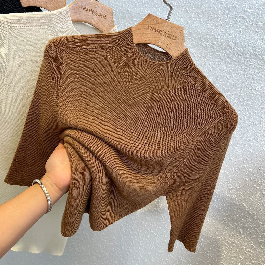 春秋薄款 打底纯色简约针织衫 修身 上衣洋气韩版 半高领中袖 2026新款