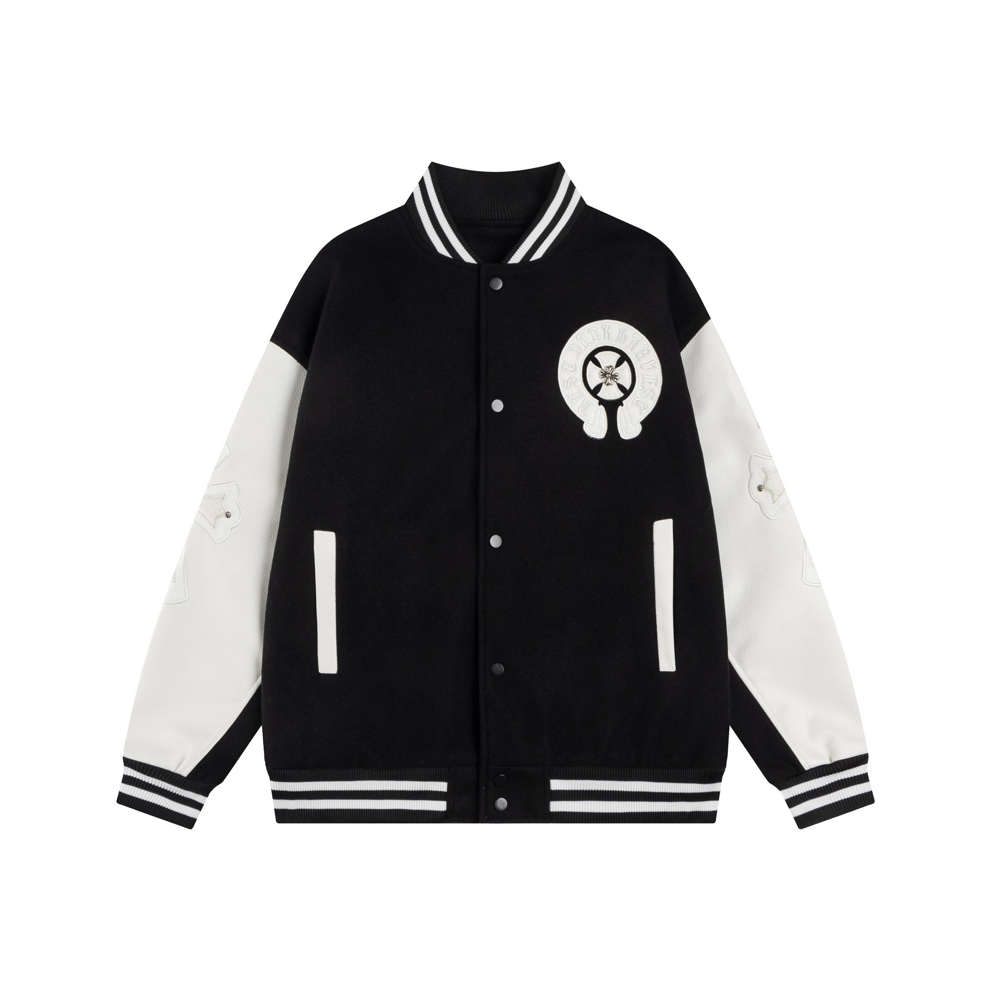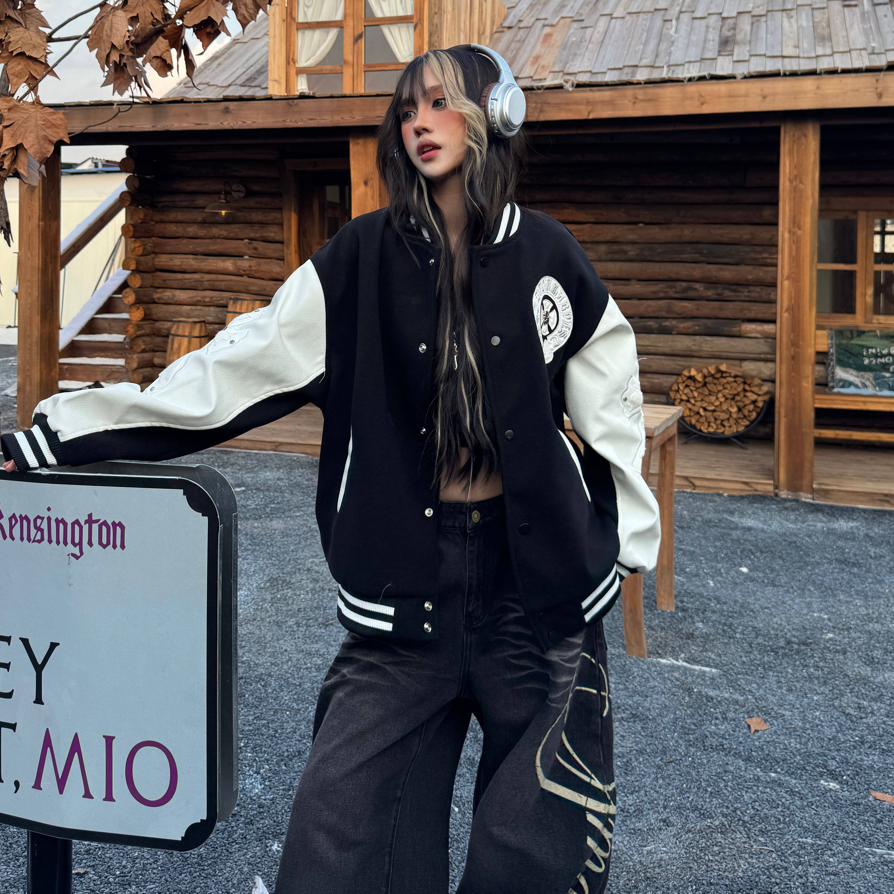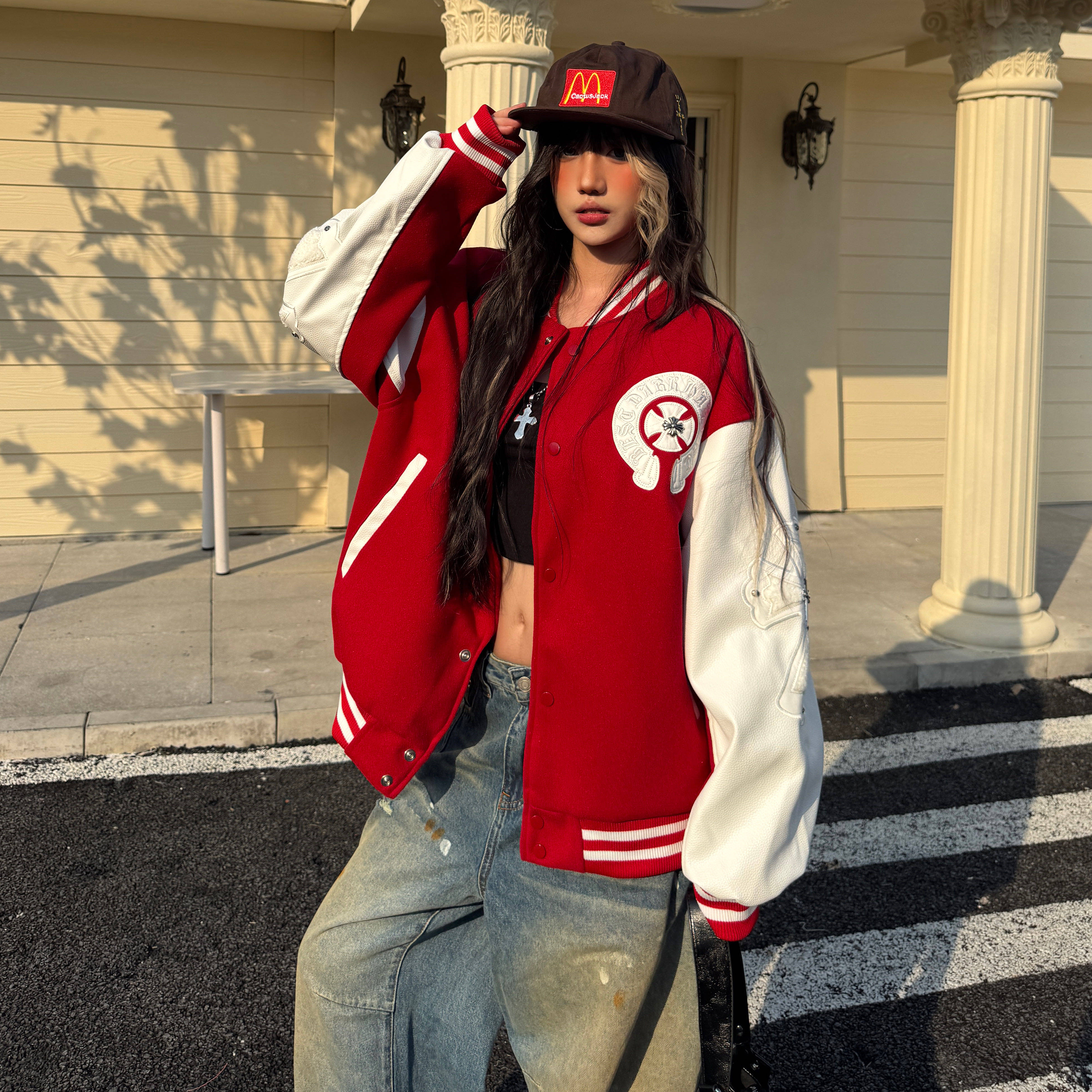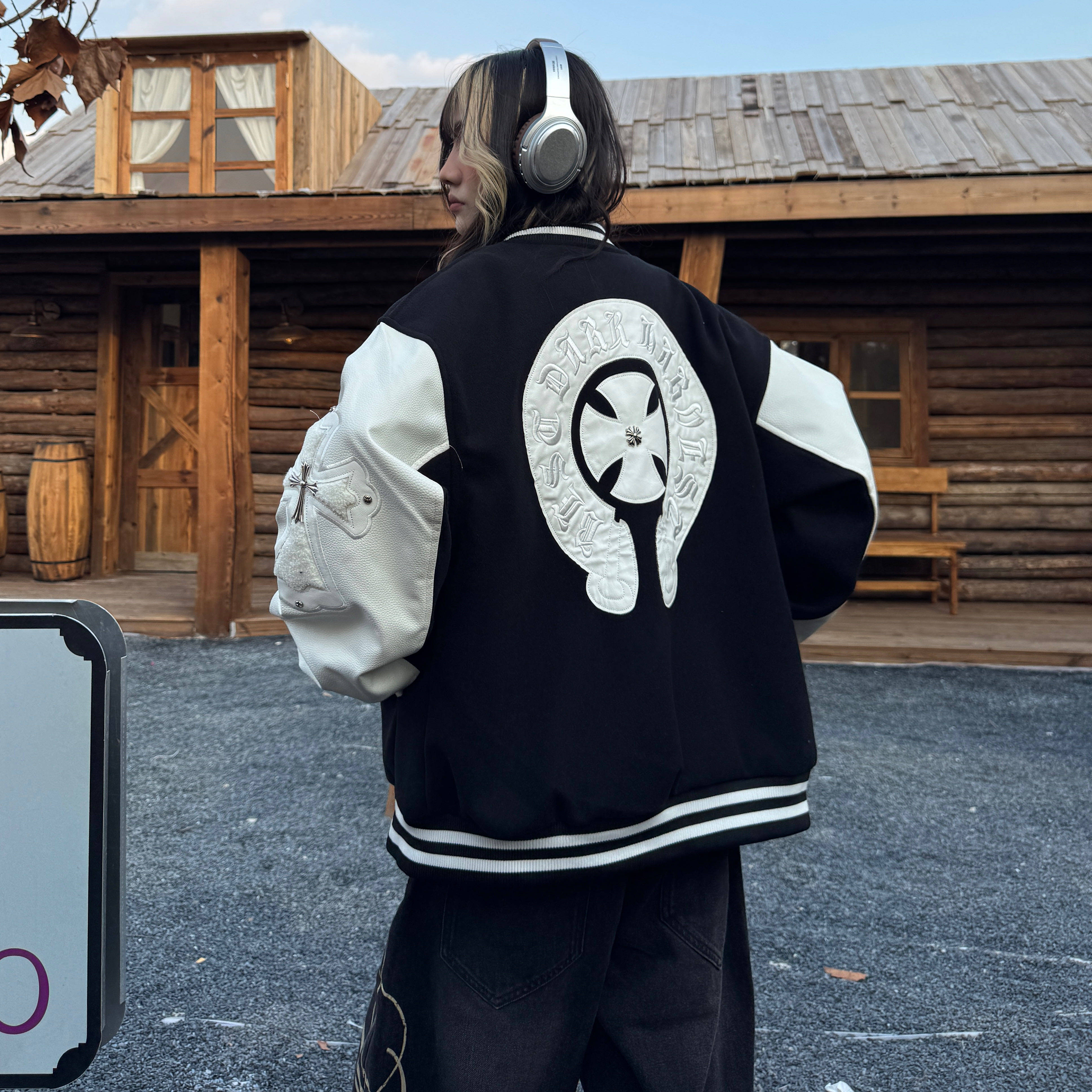 Amoeba美式 复古街头十字架贴皮刺绣钢标棒球服夹克宽松男女外套潮