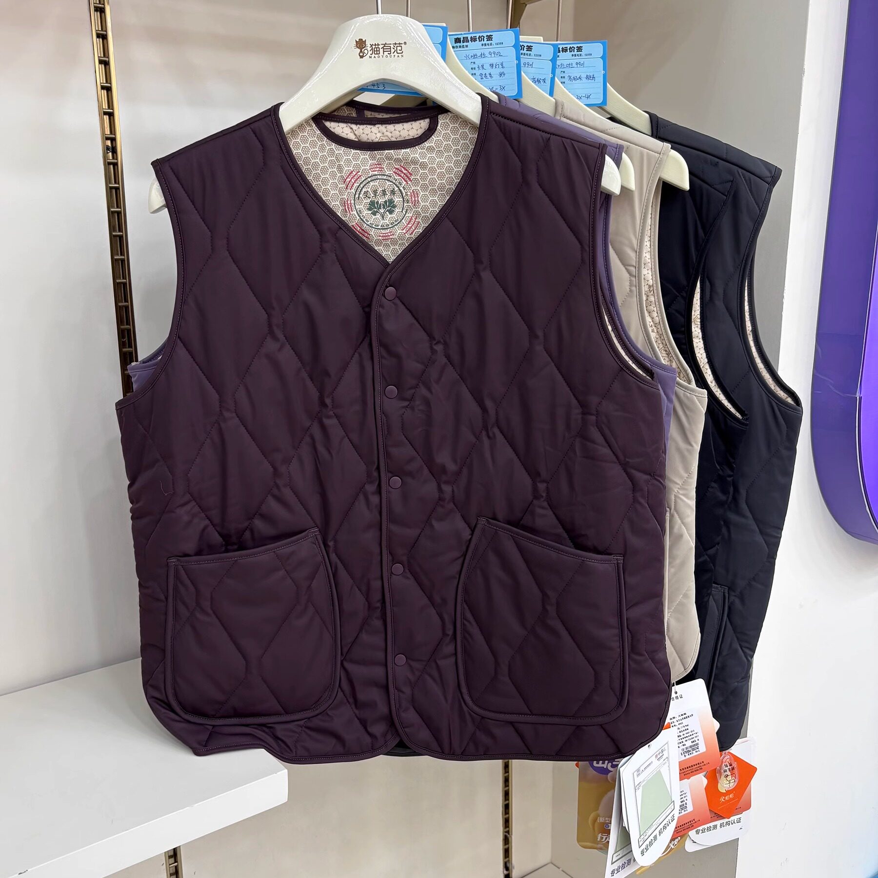 9902女9901男士 山羊绒圆领保暖夹棉马甲内搭可外穿上衣马夹