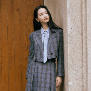 显瘦长袖 新款 上衣 2026春季 PIT复古格纹百搭短外套女小西装