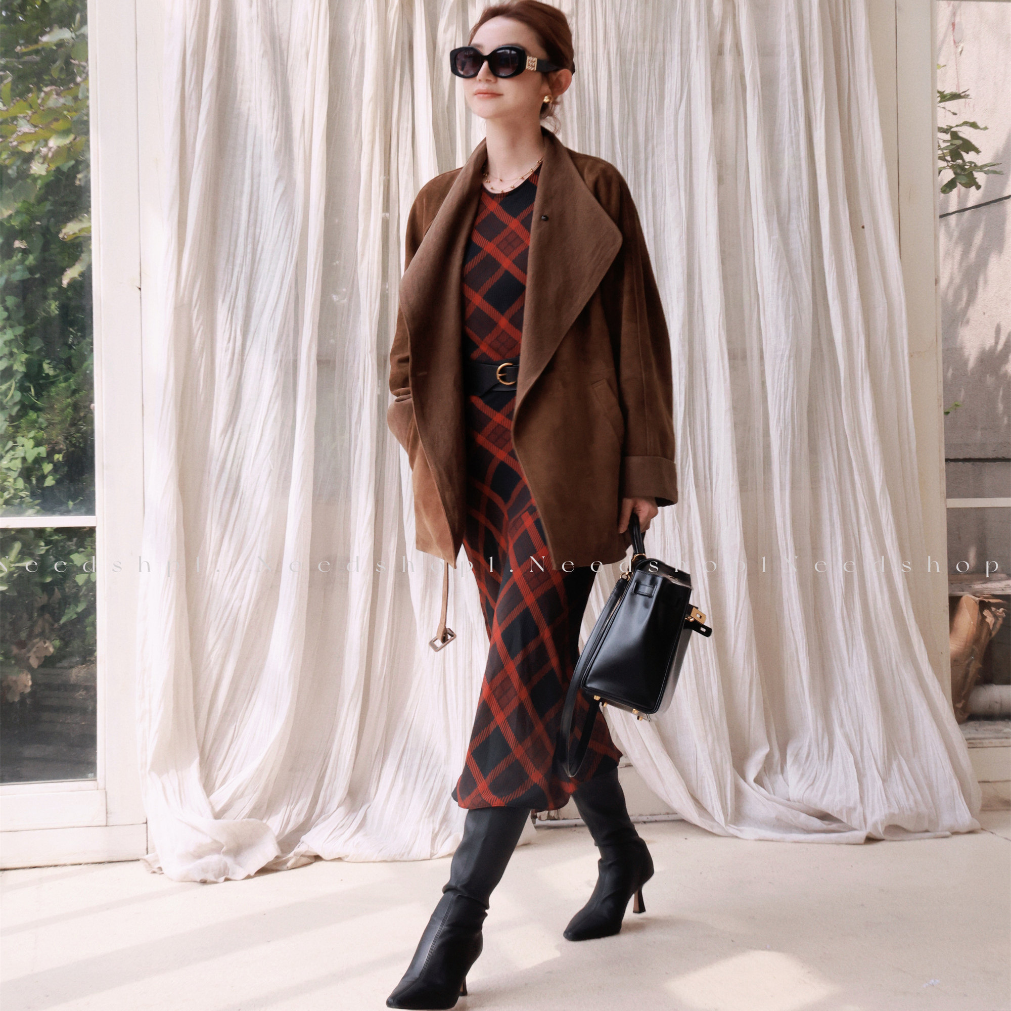 NeedShop1 双色气质大翻领真皮拼接亚麻外套女 新款