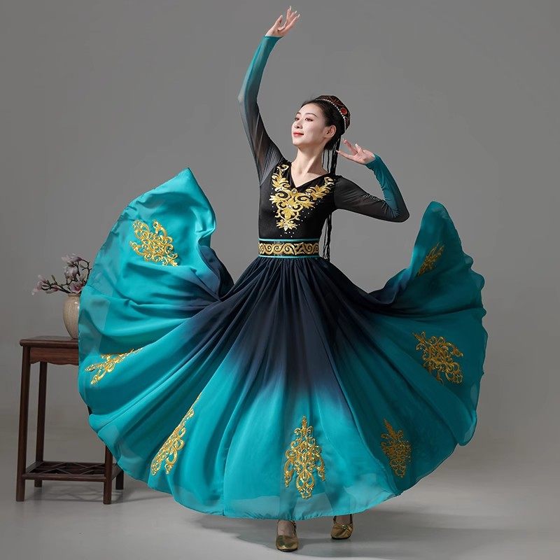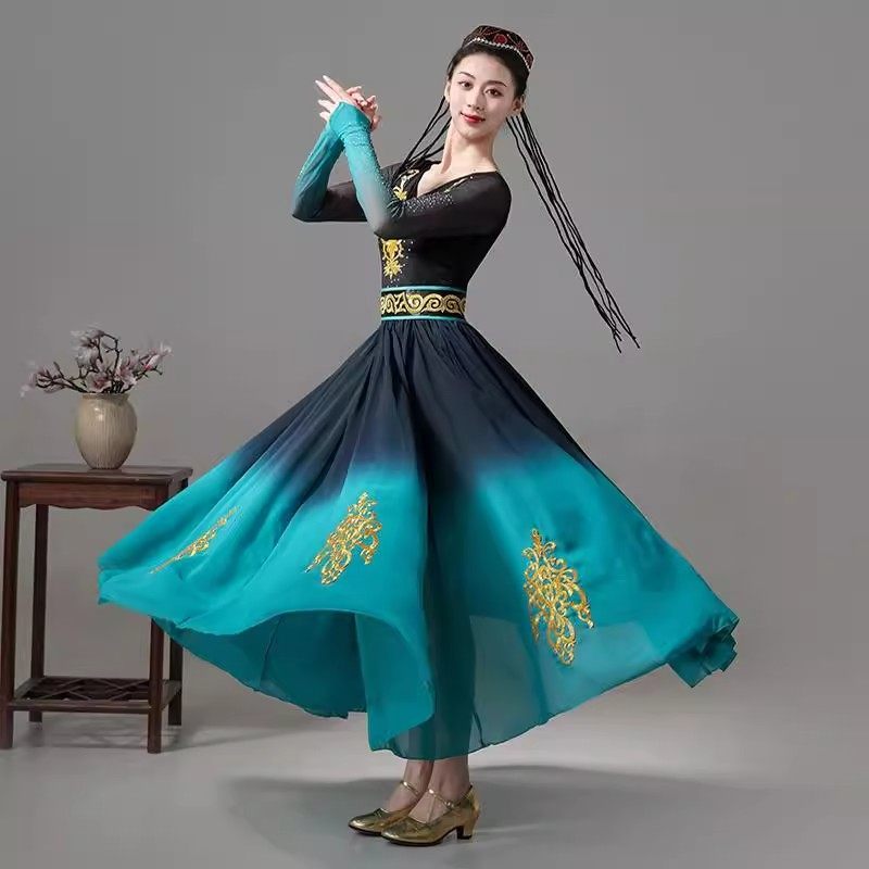 新款 维吾尔族舞蹈服大摆裙民族风舞台演出服艺考新疆舞演出服饰