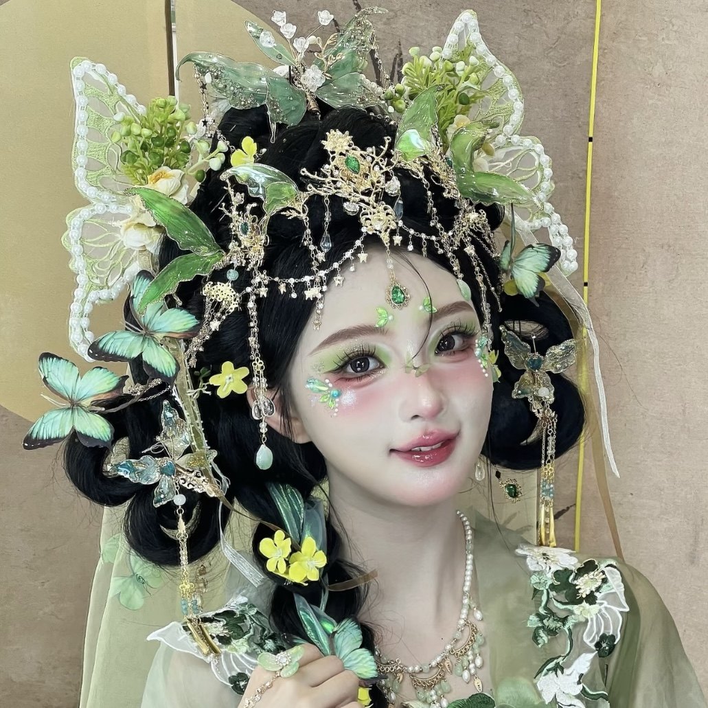 异域风蝴蝶发箍绿色超仙美人鱼头饰流苏配饰汉服精灵额饰古风发冠