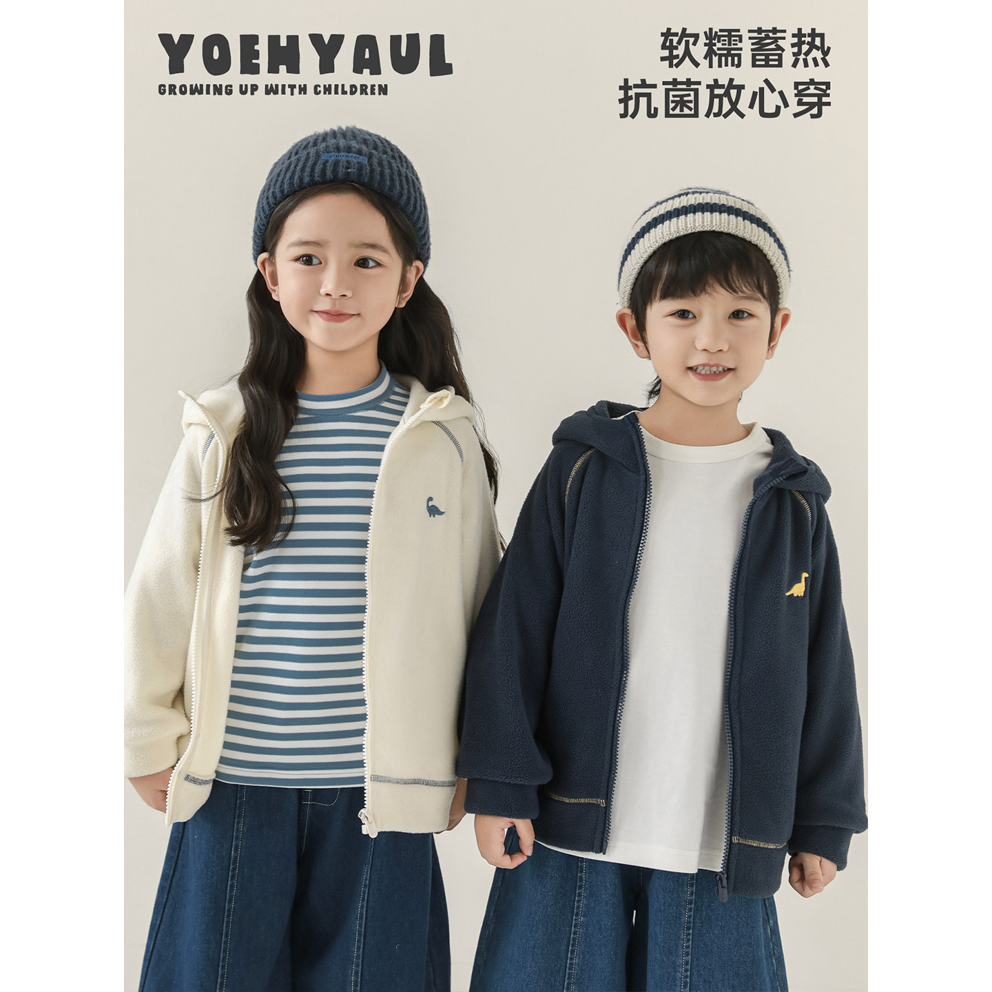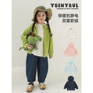 幼悠女童摇粒绒毛绒外套冬季 洋气可爱撞色无骨缝合防风保暖上衣潮