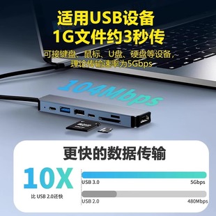 usb3.0扩展器多口拓展坞type tf卡外接鼠标耳机键盘转接笔记本连接 c分线器电脑转换接头延长多功能hub读sd