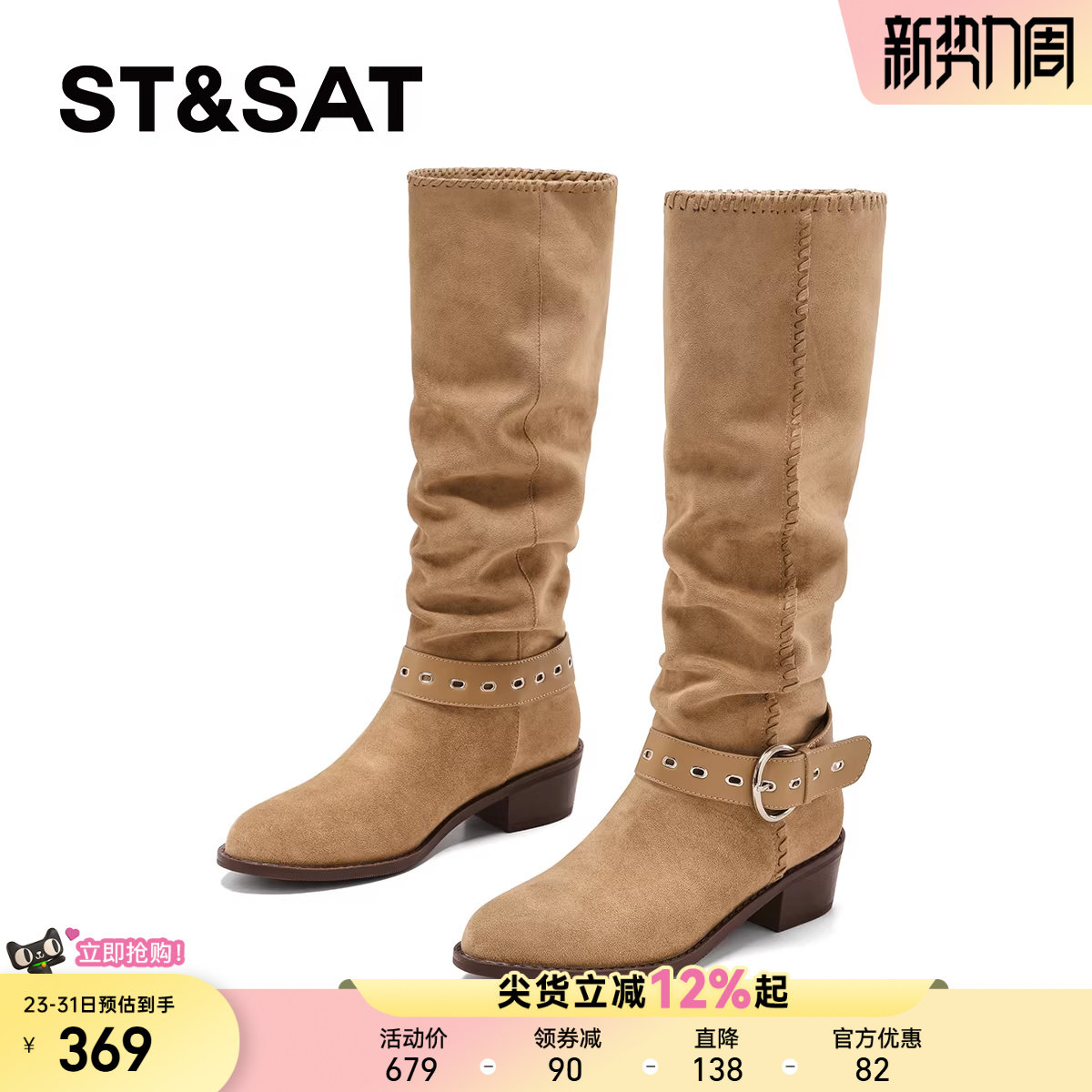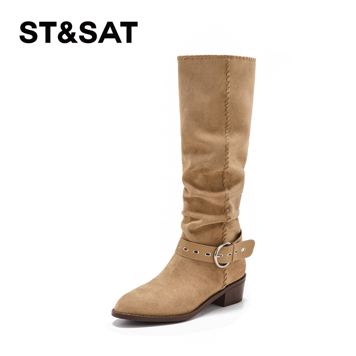 高筒卡其色西部靴堆堆骑士长靴 冬季 星期六高跟长筒靴女款 2025新款