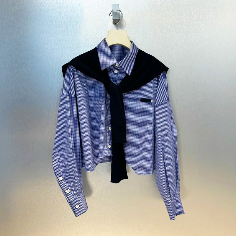 藏青毛织披肩格纹衬衫 新品 百褶裙两件套 25秋季 深圳南油高端女装