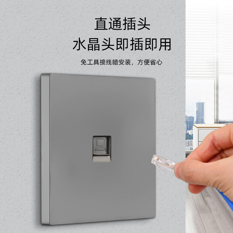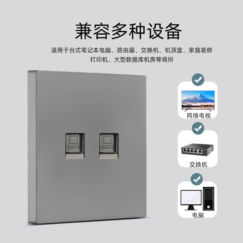 免接线直通86型暗装 宽带网线千兆双网口面板 超六类网络电脑插座