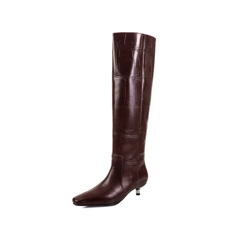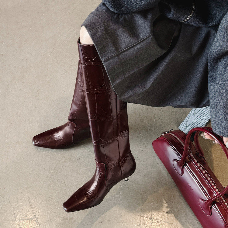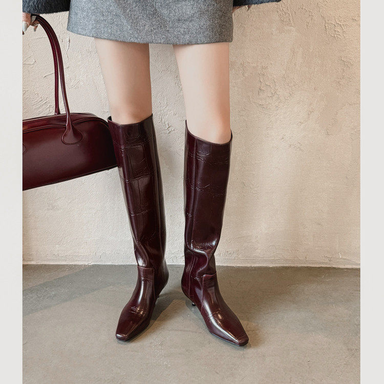 4cm法式 及膝大筒围显腿直长筒靴女 细跟方头骑士靴欧美风直筒时尚