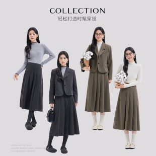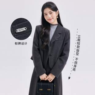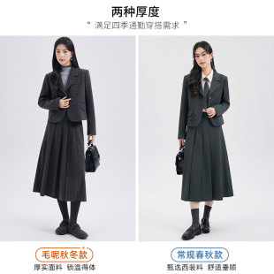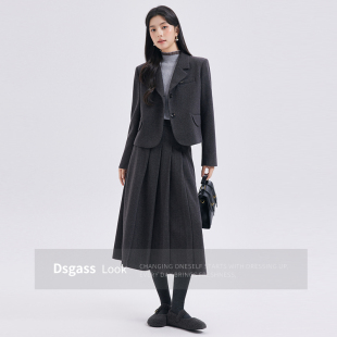 正装 达佳诗灰色短款 教师面试穿搭冬季 套装 毛呢外套女小个子厚西装