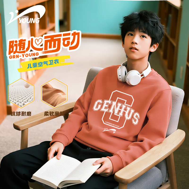 男孩白色长袖 儿童运动秋装 大童秋上衣 男童卫衣2025新款 贵人鸟童装
