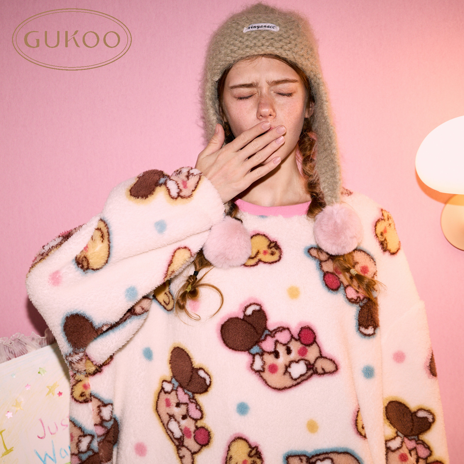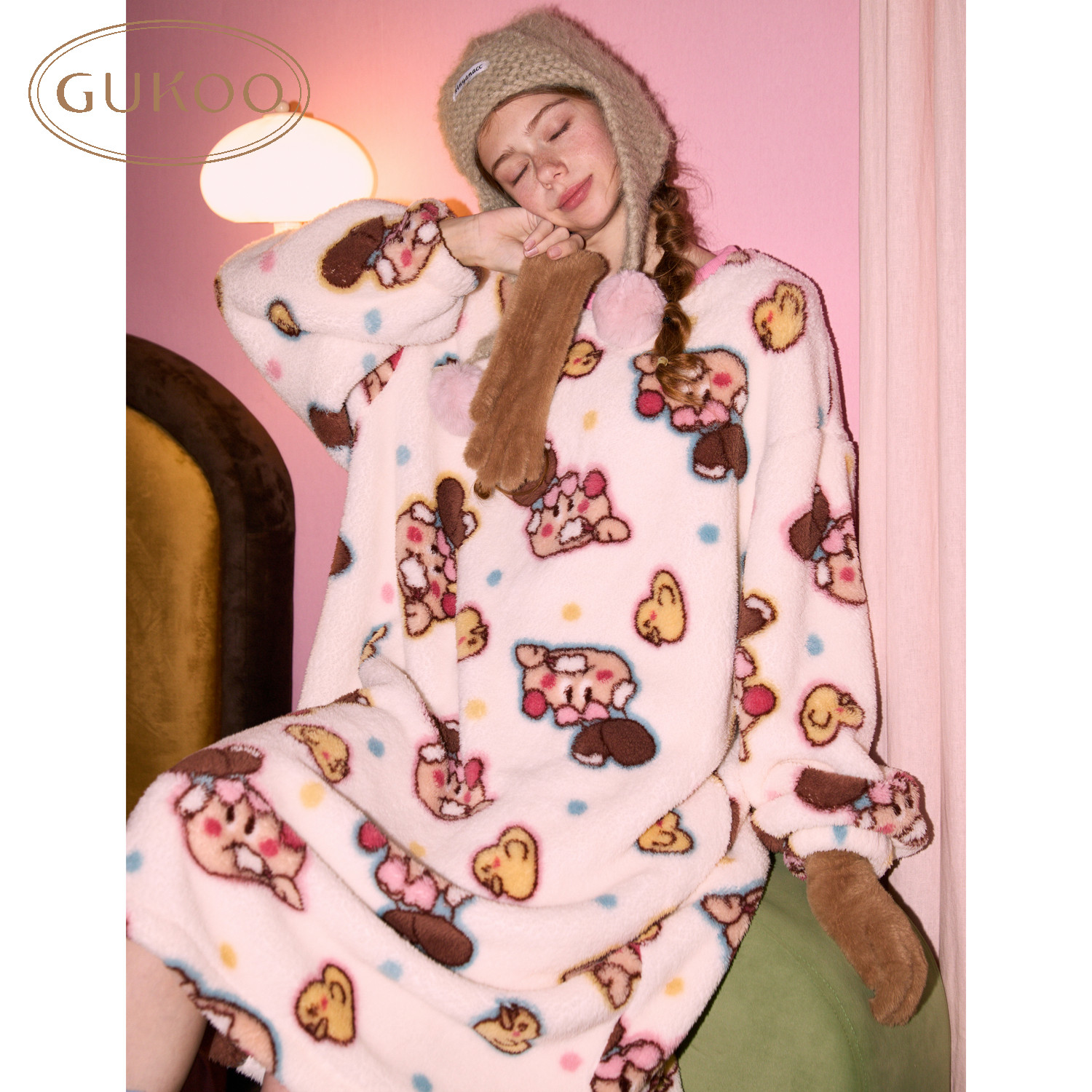 Gukoo 加厚圆领卡通加绒舒适女士家居服睡裙可外穿 果壳睡裙冬季