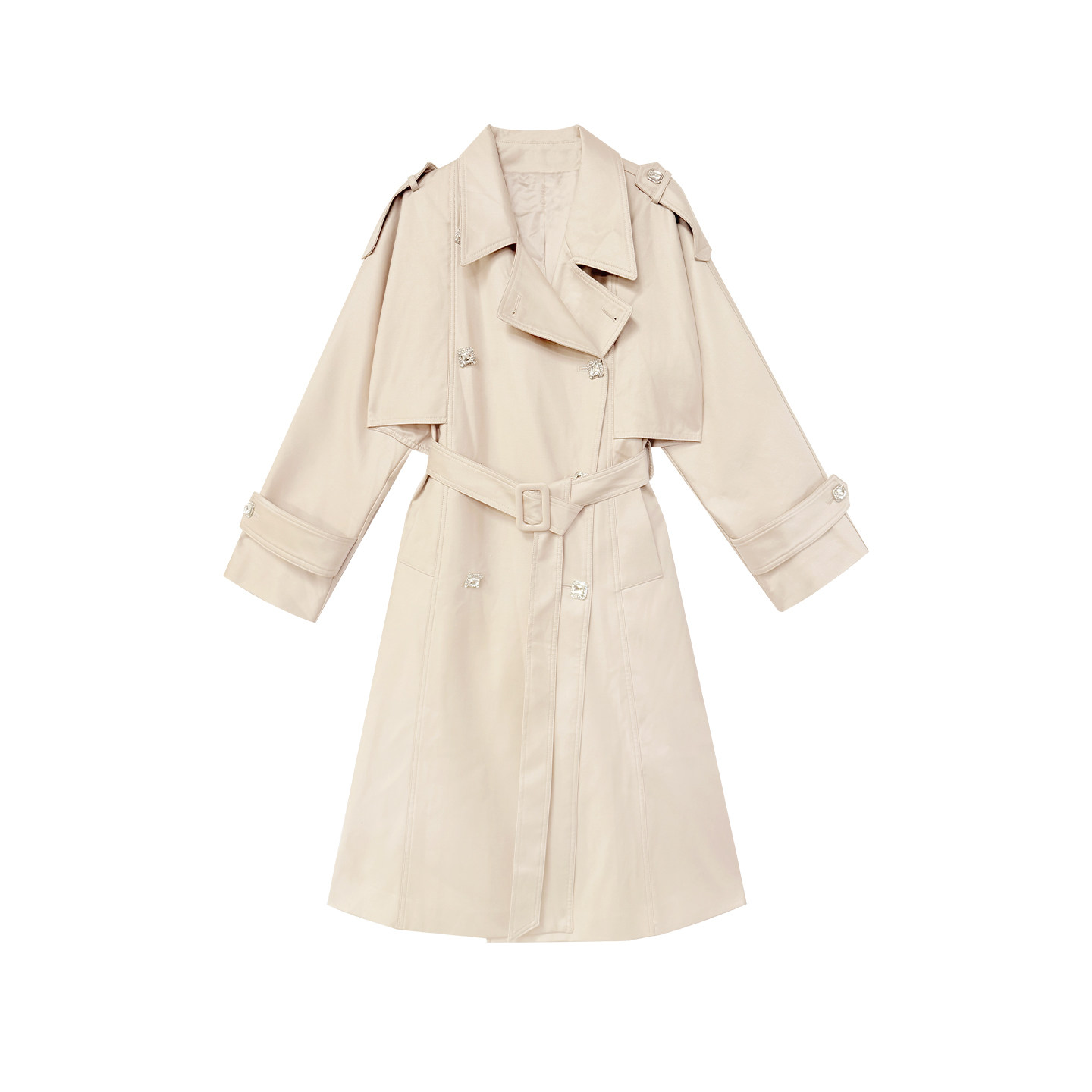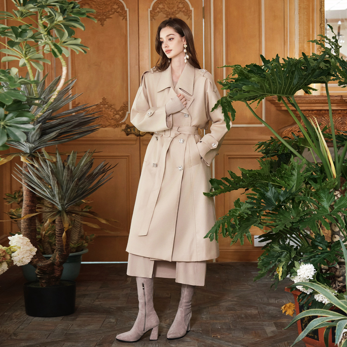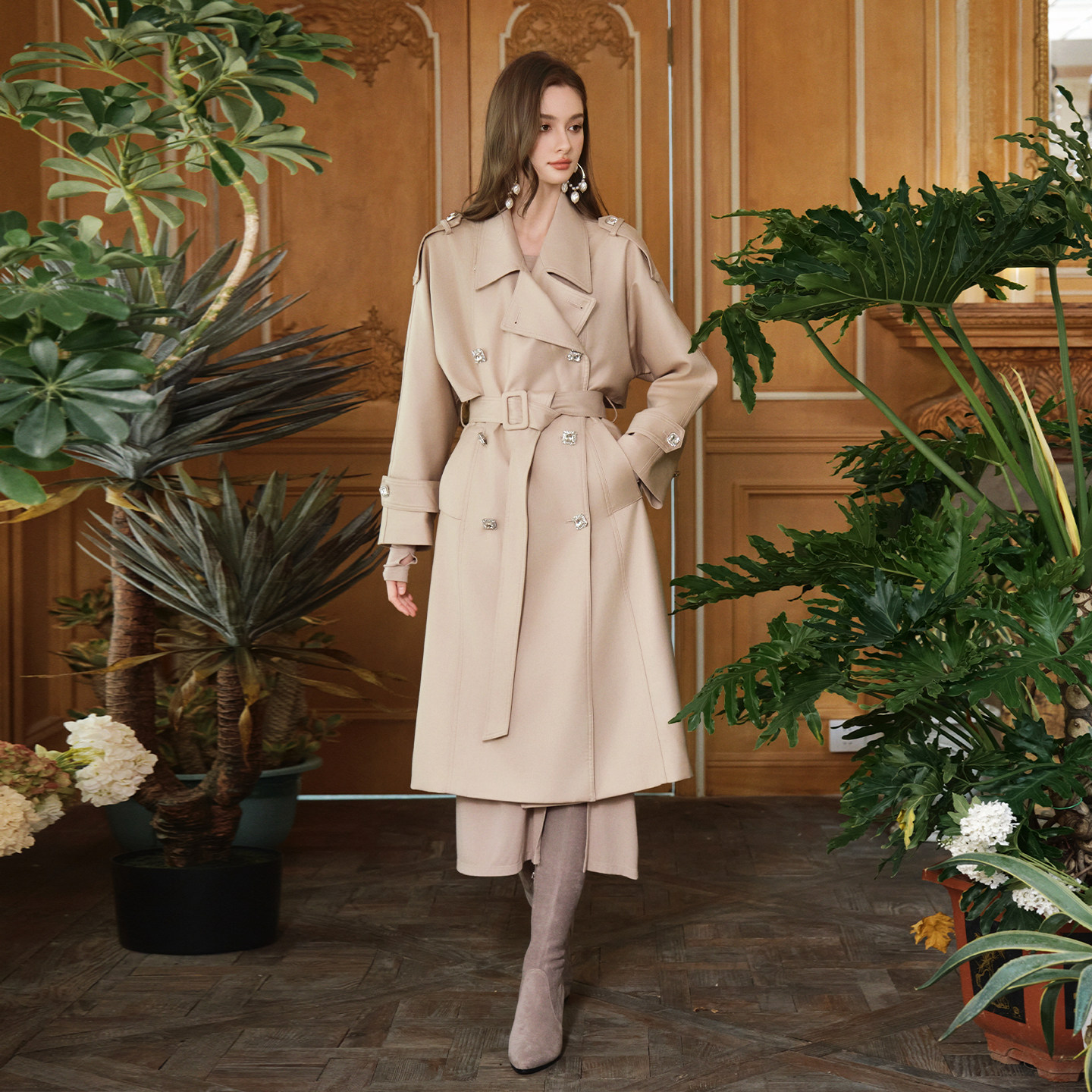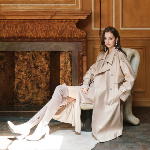 FLONAKED设计师浅咖色高支高密双排扣长款 廓形风衣小众设计