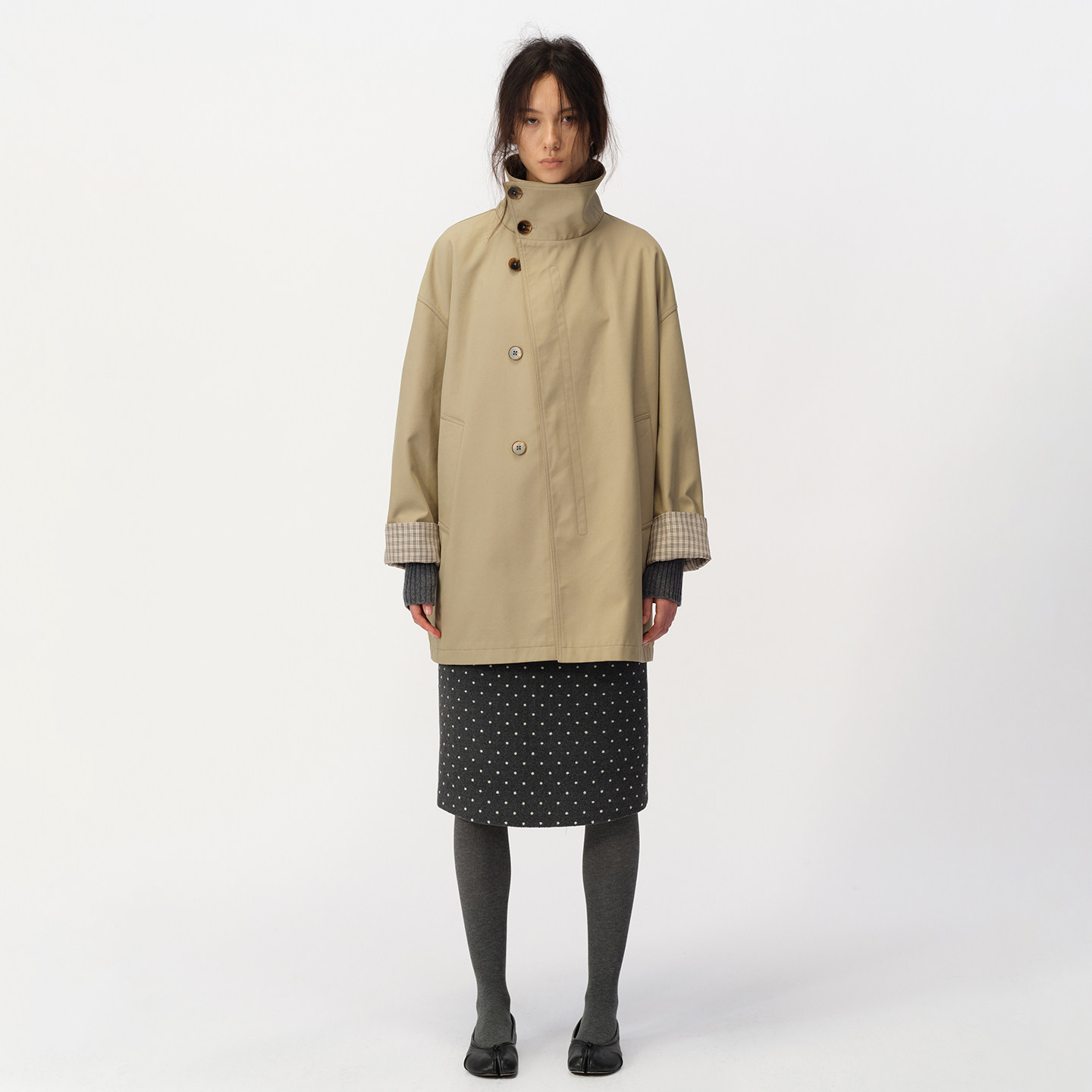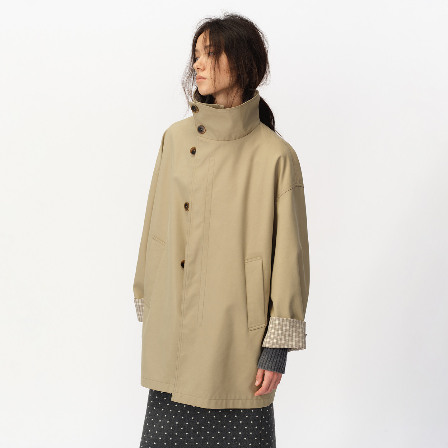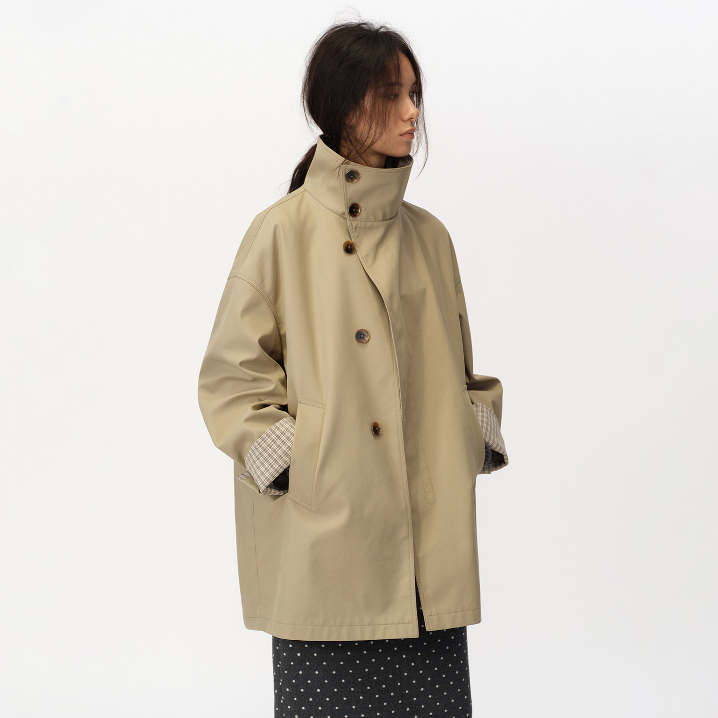 SMIIILE复古不对称斜襟立领风衣外套女秋高级感宽松挺括防风外套