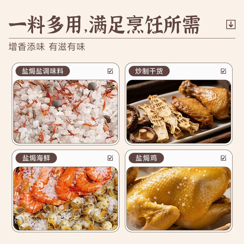 雪涛未加碘盐焗盐888g家用桂皮八角中式 调味大粒海盐粗盐