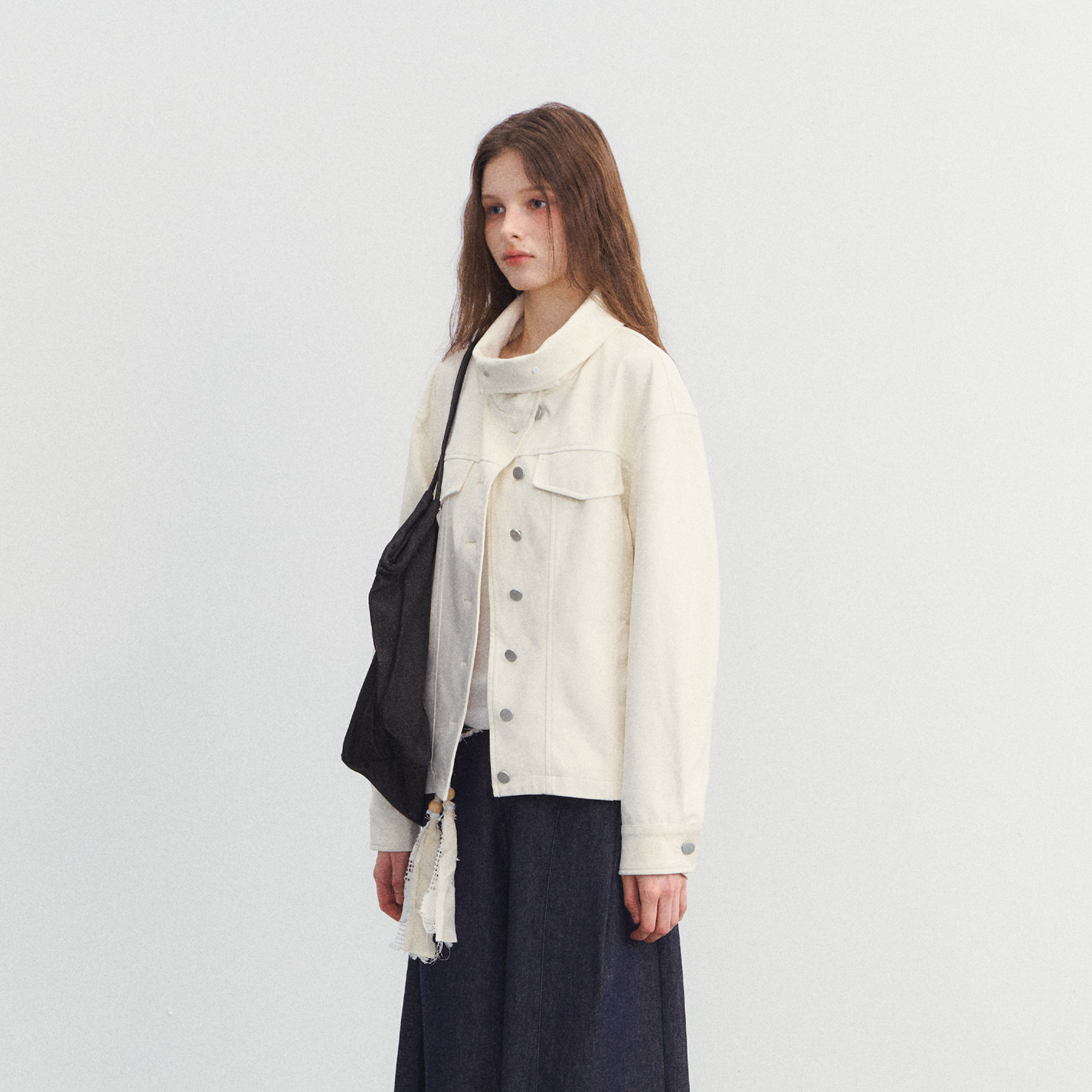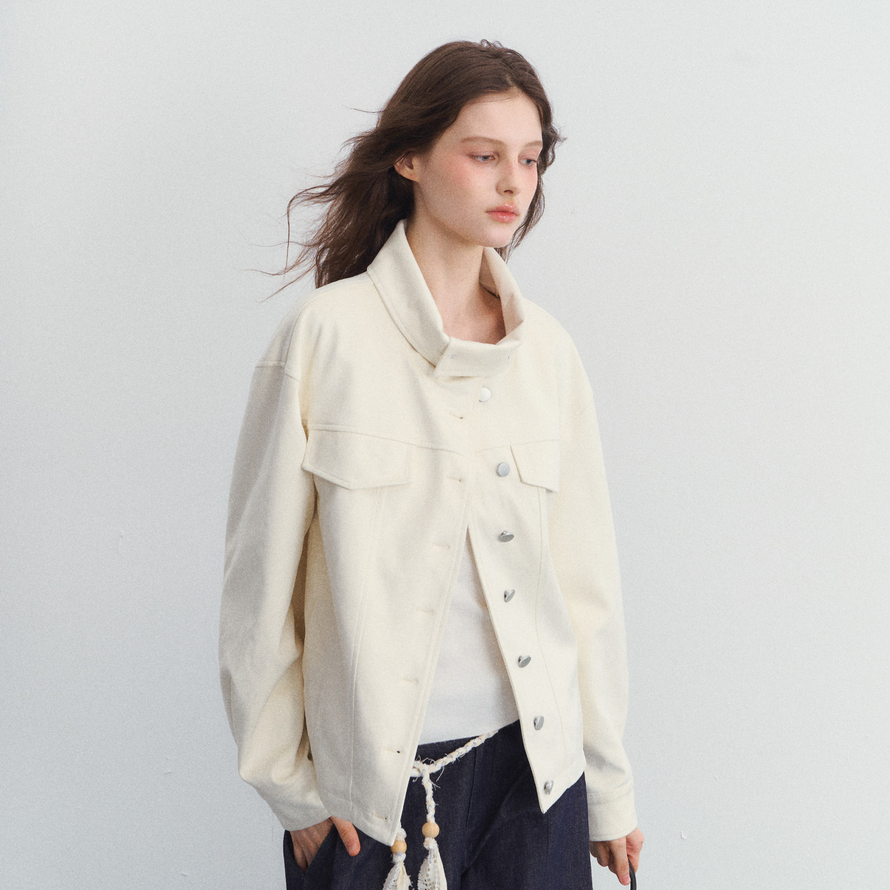 可卷不规则立领麂皮外套设计感夹克上衣 白色搁浅 SPEAR YOUTH
