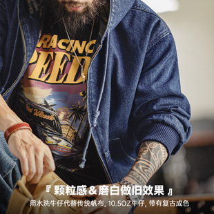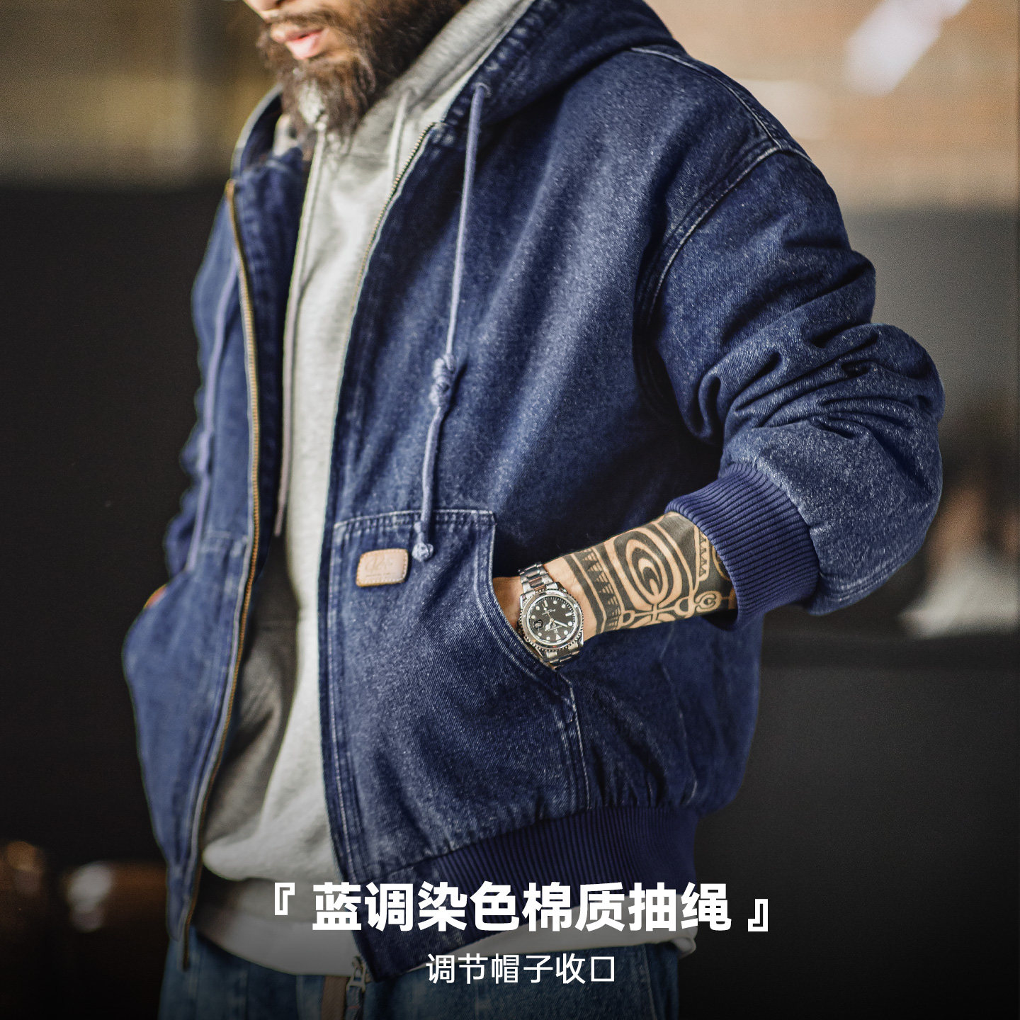 夹克潮 阿美咔叽工装 美式 复古水洗蓝色加绒牛仔外套男2025秋冬新款