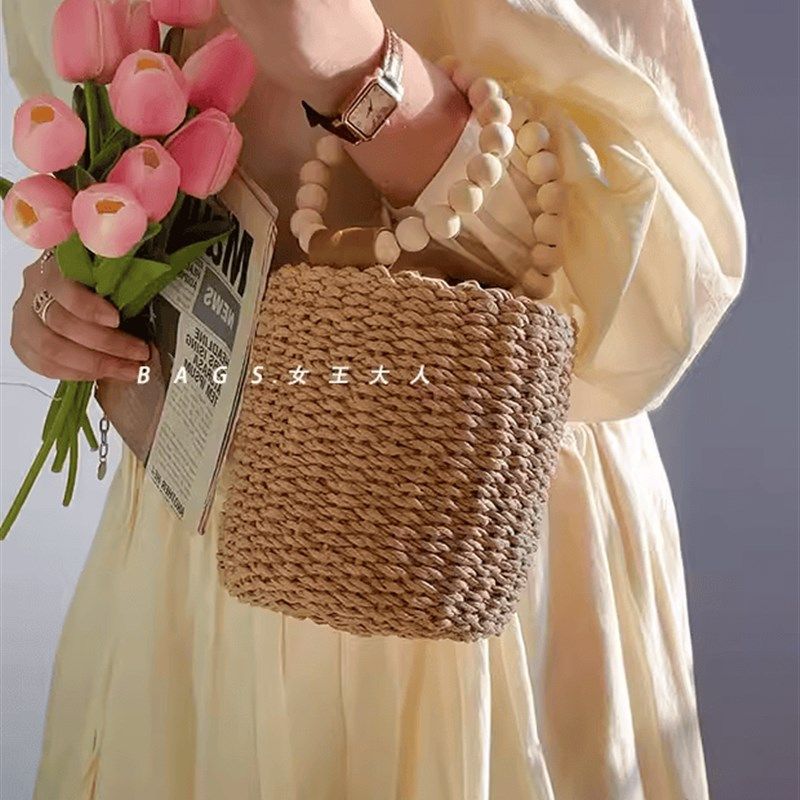 新款 春夏泫雅风针织手拎包外出游玩百搭手提包上班通勤便携水桶包