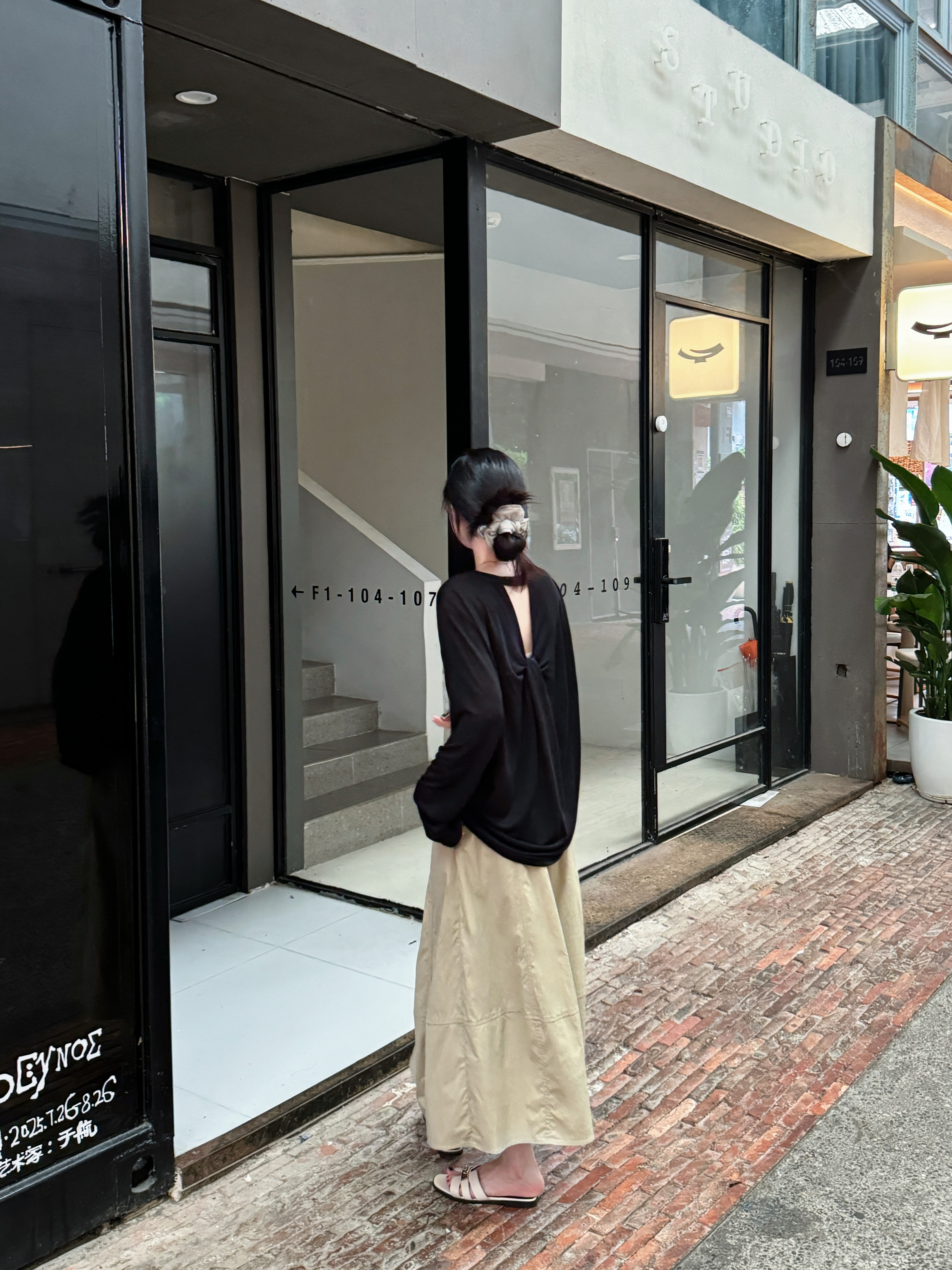 美背T恤 慵懒宽松后背镂空防晒罩衫 韩系气质高级感长袖 上衣女秋季