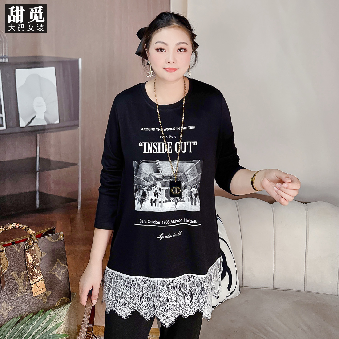 胖mm300斤字母印花蕾丝拼接长款 2025秋季 宽松卫衣 女装 甜觅特大码