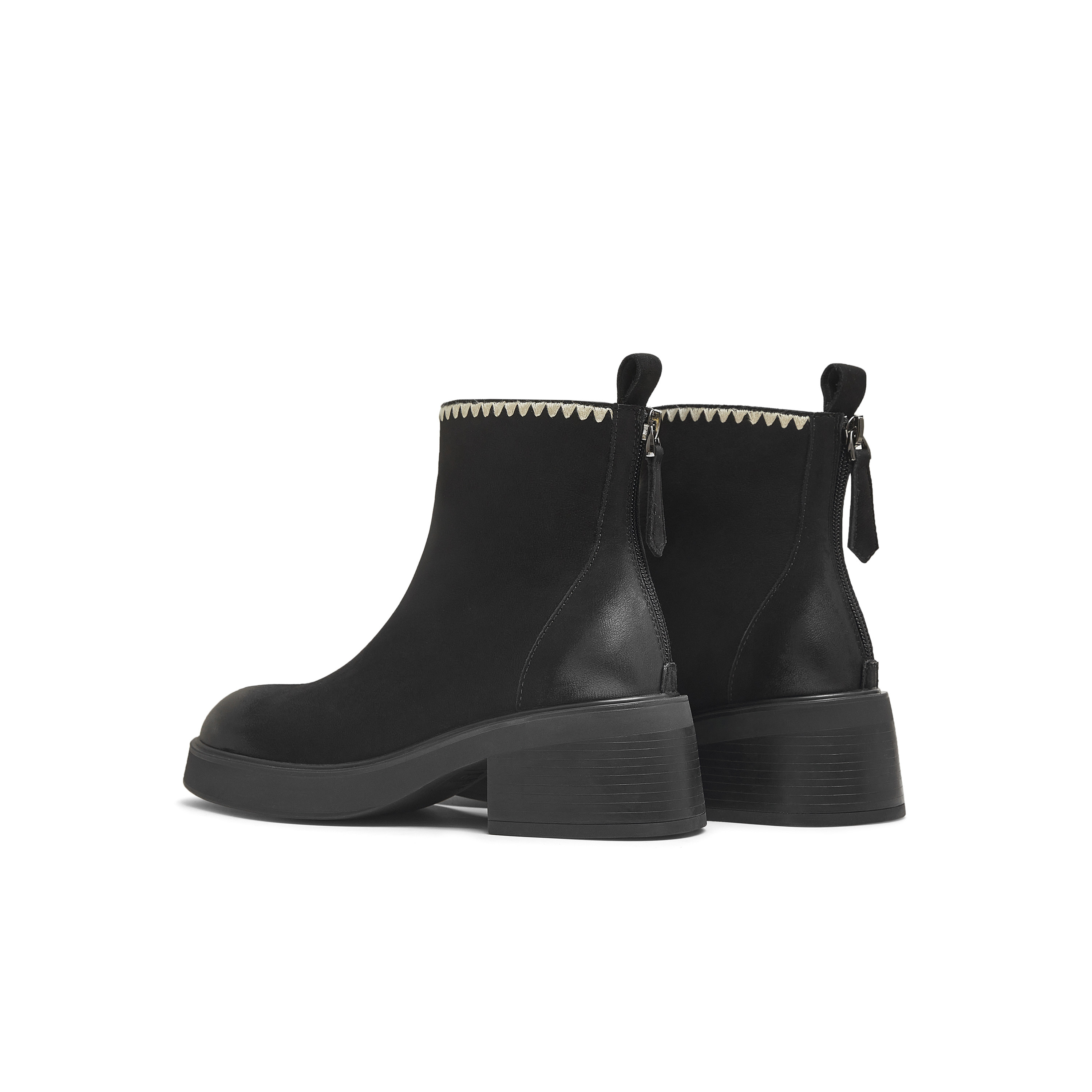 百丽画廊假日加绒时装 弹力靴反绒面粗高跟显瘦瘦短靴子BBWB1DZ5