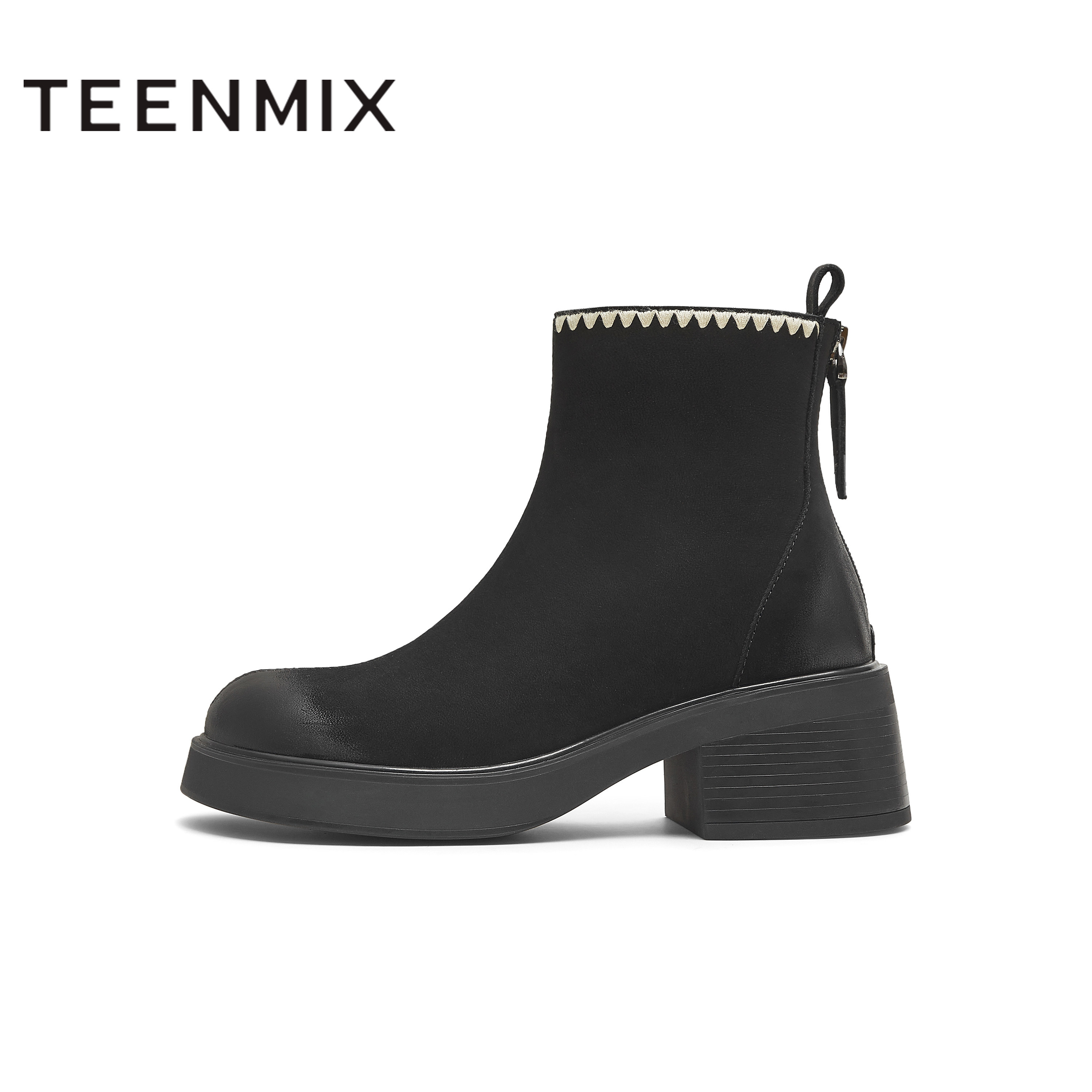 靴女瘦瘦短靴弹力靴CEG07DZ5 加绒时装 TATA他她喵爪靴2025冬季 新款
