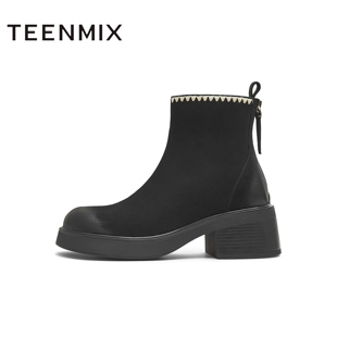 TATA他她喵爪靴2025冬季 靴弹力靴女靴瘦瘦靴加绒短靴CEG07DZ5 时装