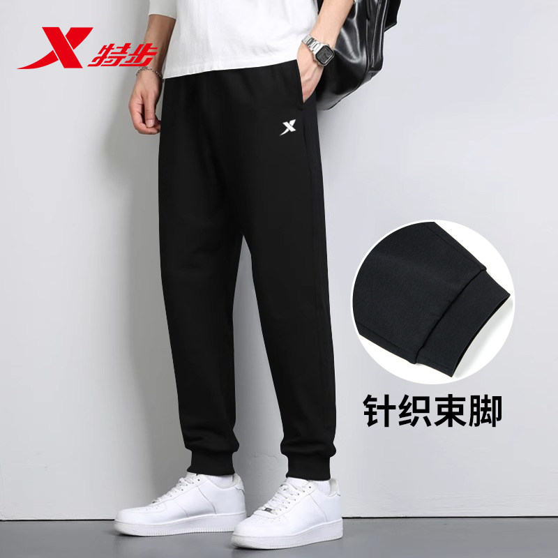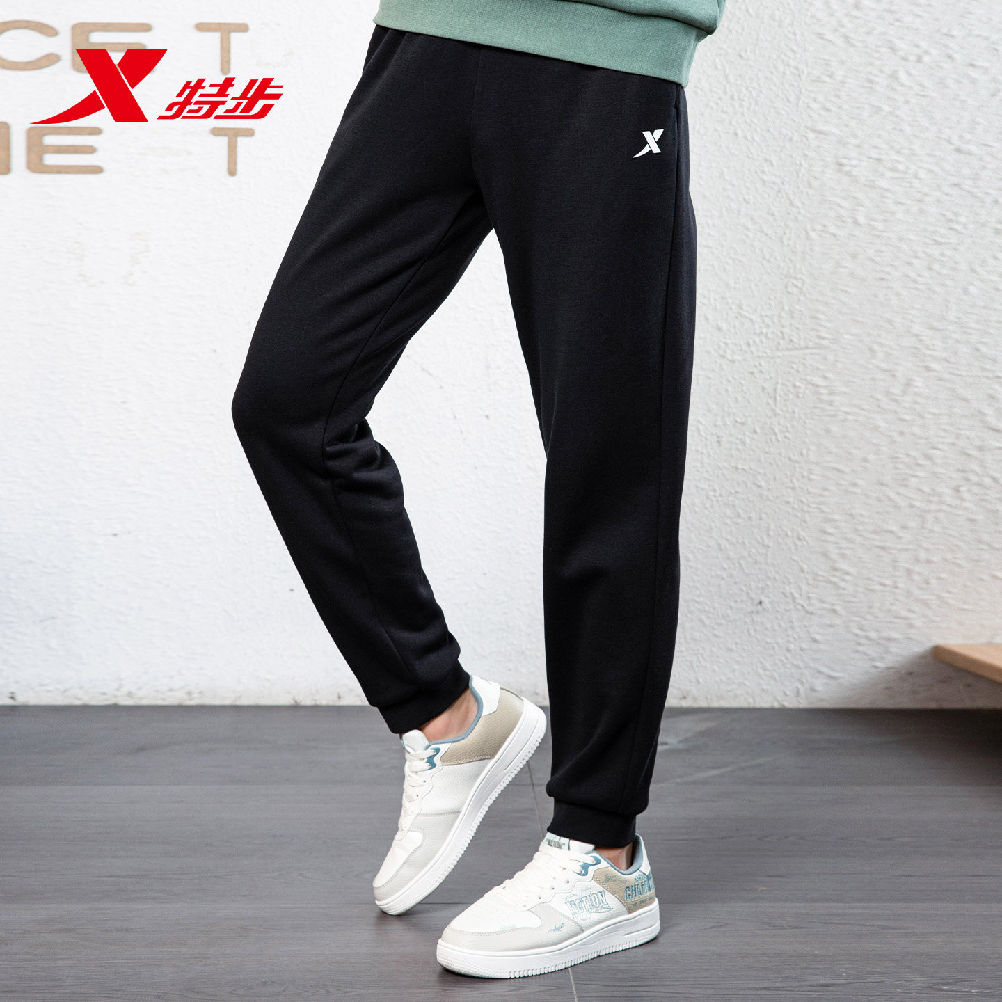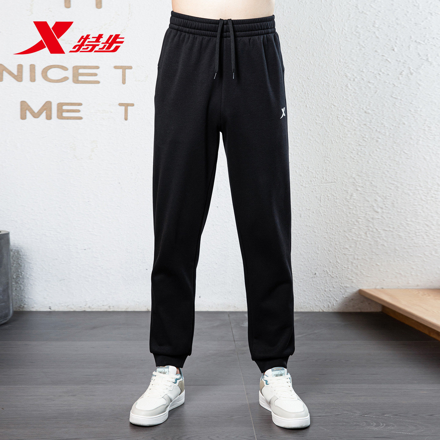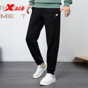 束脚卫裤 特步运动裤 黑色收口小脚休闲裤 子秋冬加绒加厚针织裤 男裤