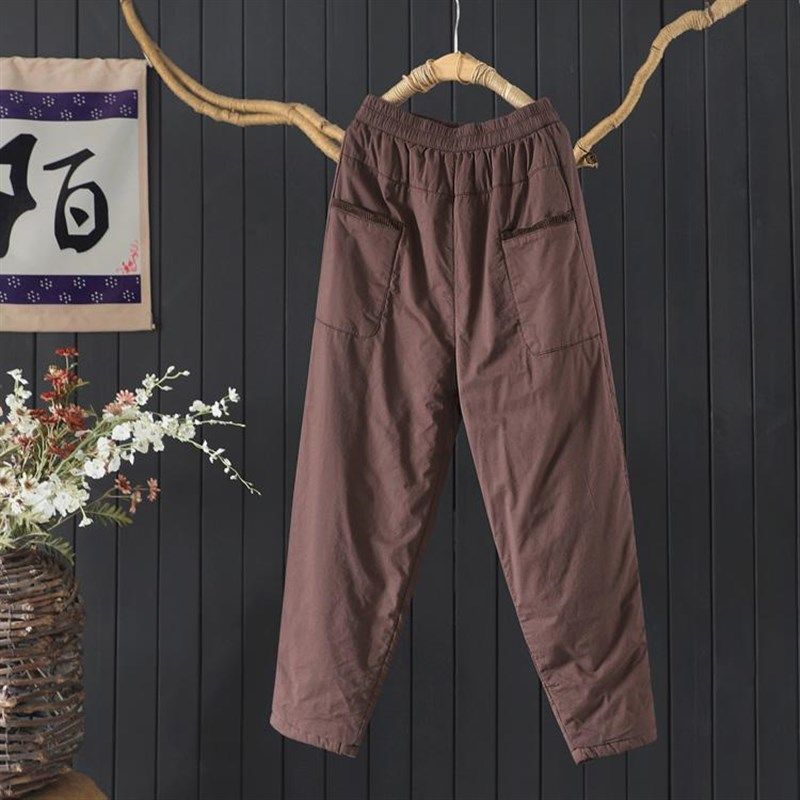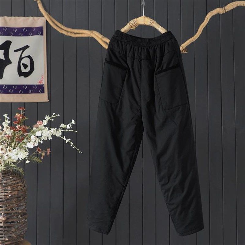 女 宽松纯色保暖棉裤 2024年冬百搭通勤立体口袋夹棉加厚哈伦裤 长裤