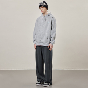 公鸡冠军深灰色直筒重磅卫裤 男秋冬宽松潮流条纹垂感廓型休闲长裤
