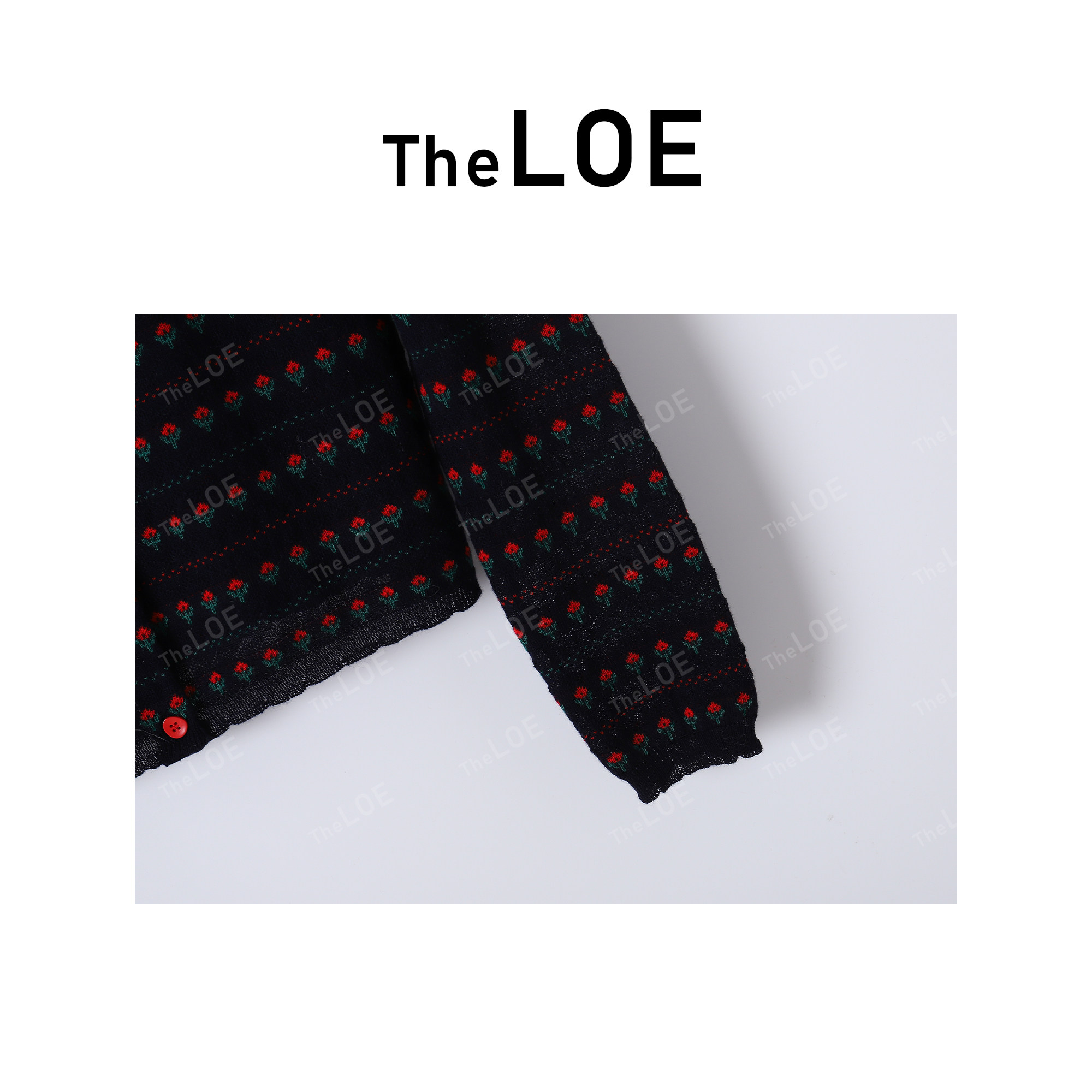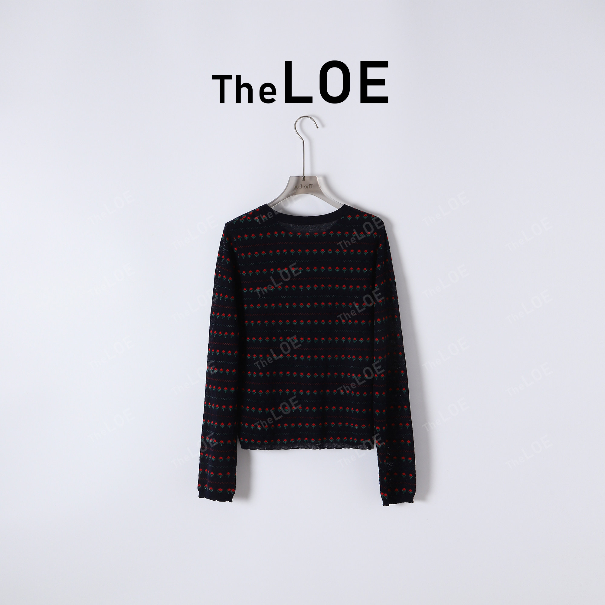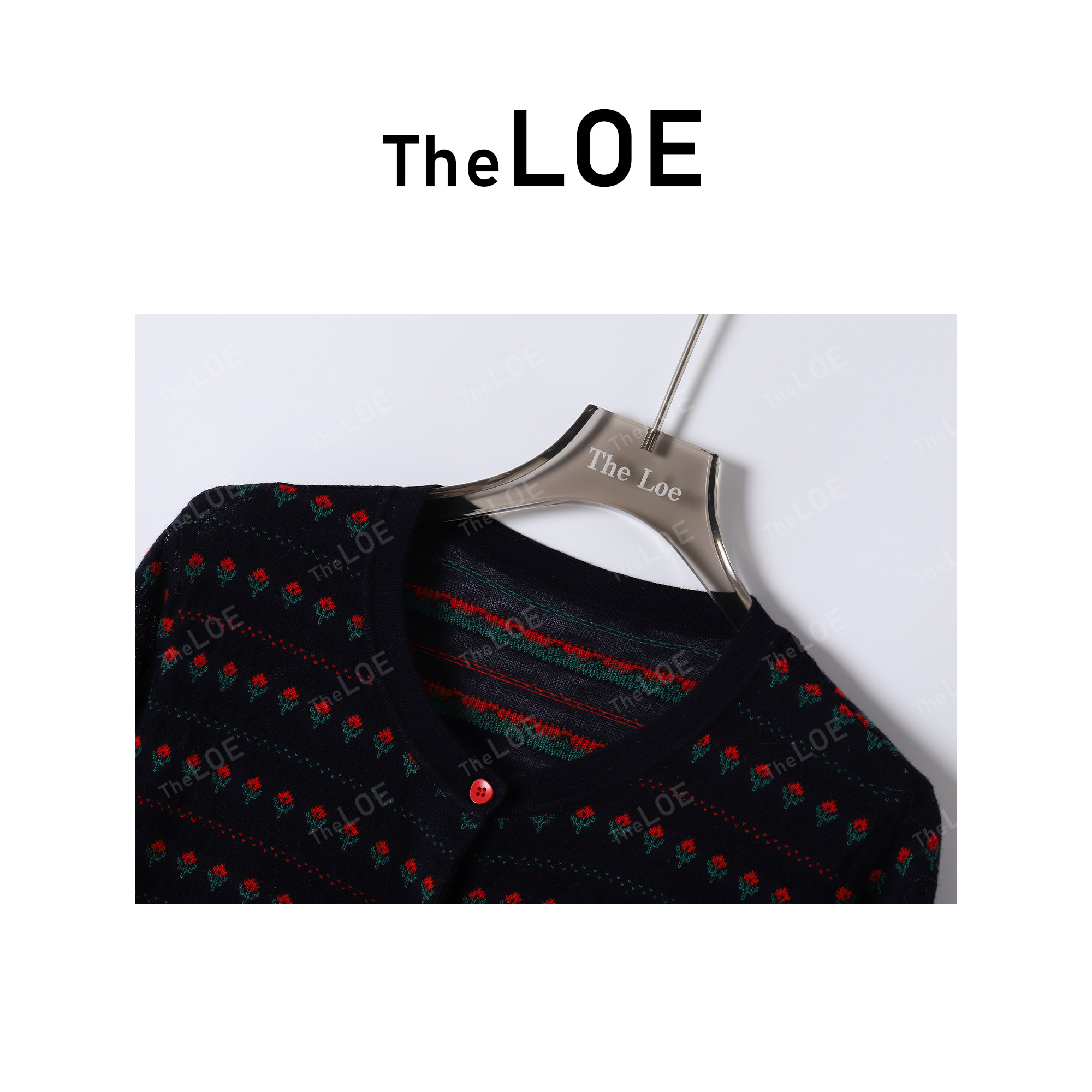 针织开衫 骆衣衣TheLOE 绵羊毛条纹像素花朵百搭时尚