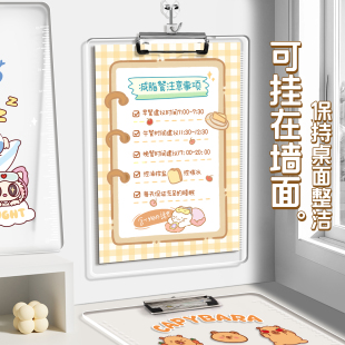 a4文件夹板夹写字板透明卡通可爱高颜值书写垫板小学生专用资料试卷夹加厚画画垫板硬板纸张固定收纳夹金属夹