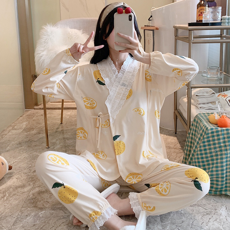 长袖 带杯带胸垫秋季 男纯棉睡衣女新款 蕉内棉棉301Home家居服套装