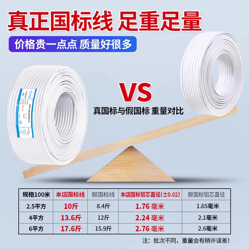 白色电线国标三相电缆线2芯3芯1.01.52.54平方户外家用电源护套线