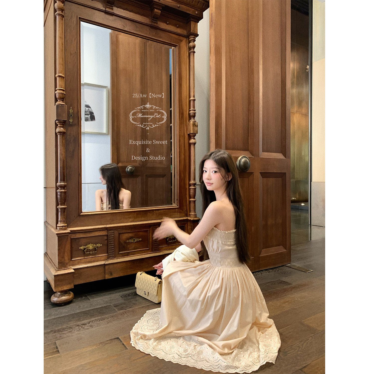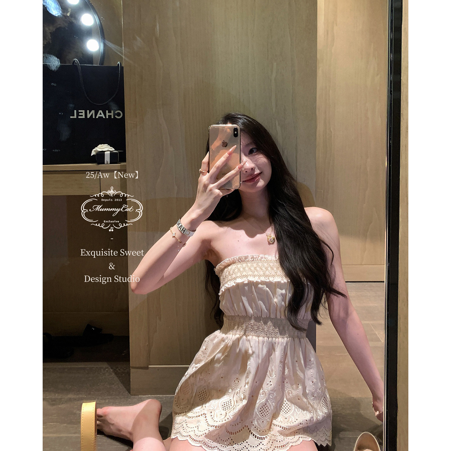 新品 Mummy 西西里午后 下蛋喵 纯棉刺绣打揽连衣裙系列 Cat