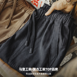 休闲束脚直筒藏青色长裤 复古莱赛尔天丝贝克裤 子男春 美式 马登工装