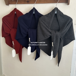 纯羊毛100%wool高品质秋冬围巾披肩女外搭两用纯色大宽松三角巾