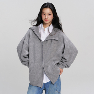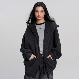 RAPPEYE 上衣重磅斜拉链毛衣外套 高级感百搭宽松慵懒连帽针织开衫