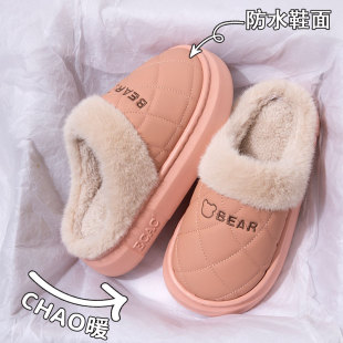 2025新款 冬季 家居室内加绒保暖外穿厚底情侣棉拖男 女款 防水棉拖鞋