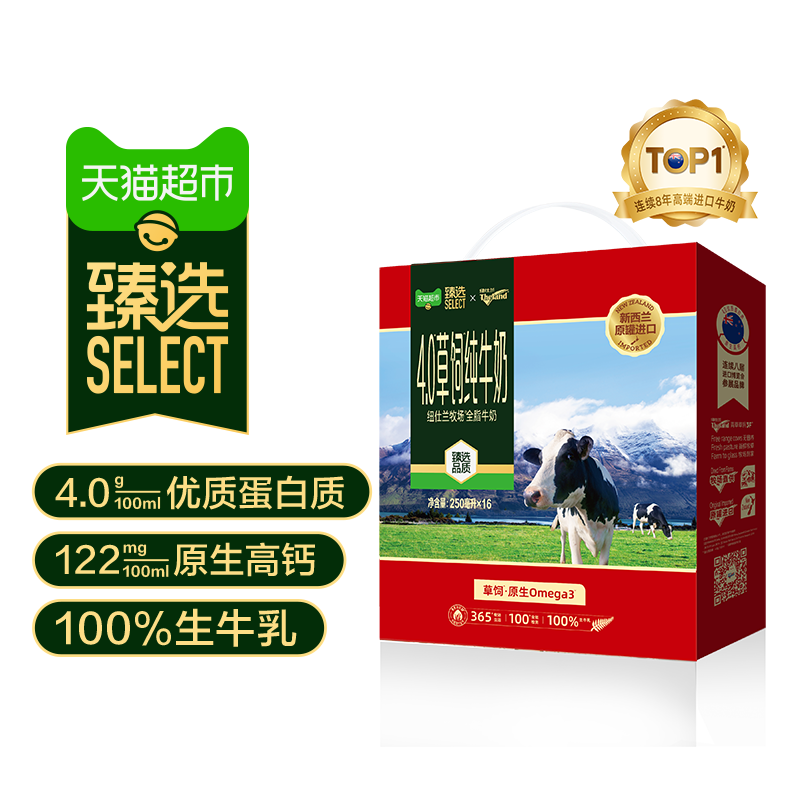 进口新西兰纽仕兰4.0蛋白质全脂高钙纯牛奶送礼礼盒儿童 臻选