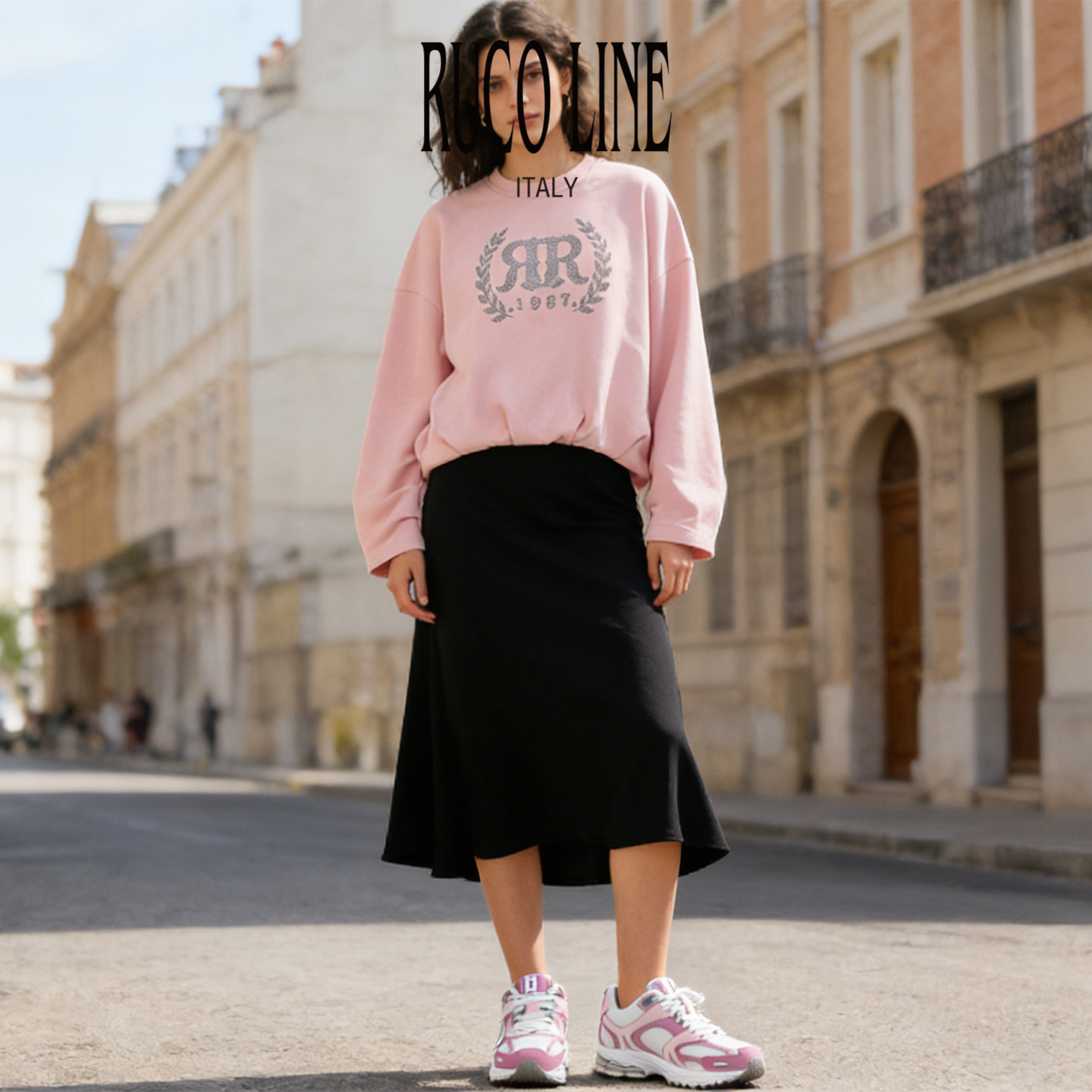 纯棉卫衣女烫钻高腰圆领长袖 秋冬新款 上衣 Line如卡莱 Ruco