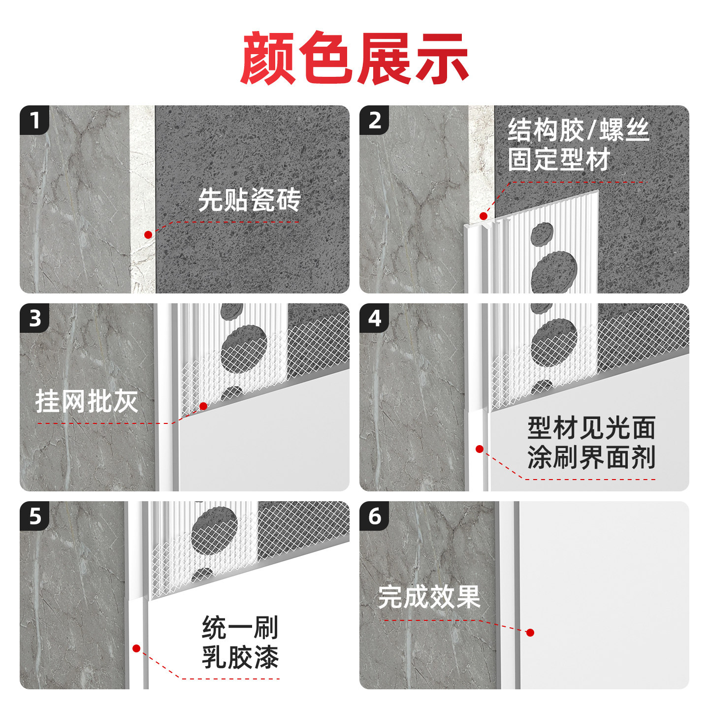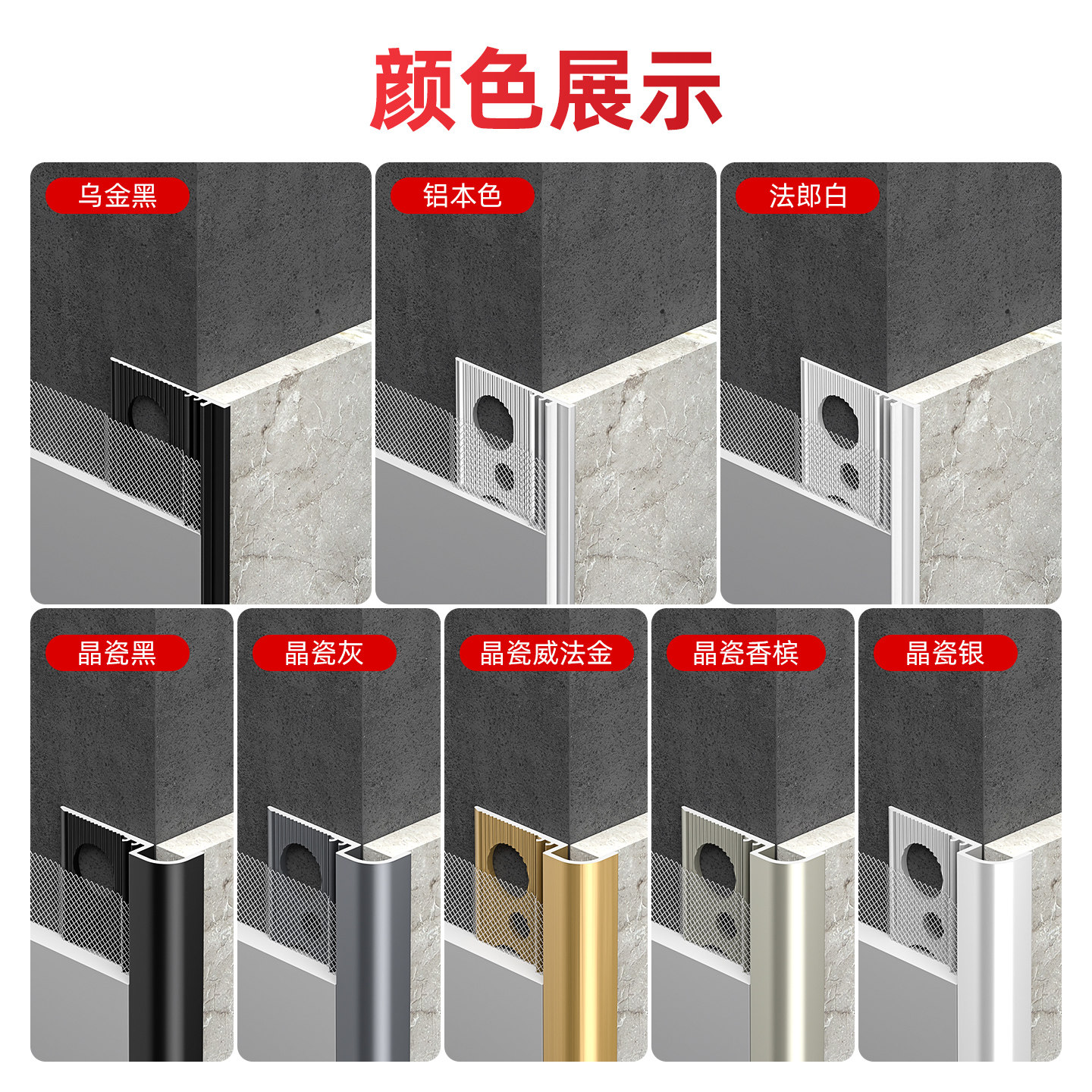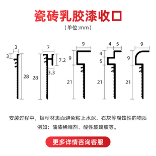 铝合金瓷砖收口条乳胶漆墙面海棠角预埋件隐形批灰金属阳角收边条