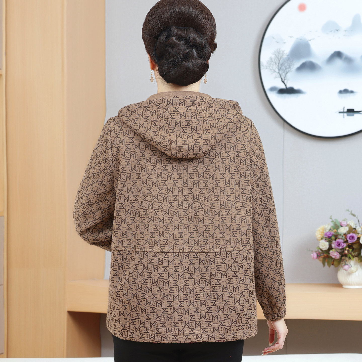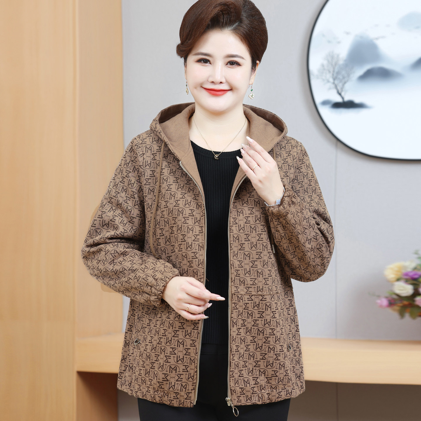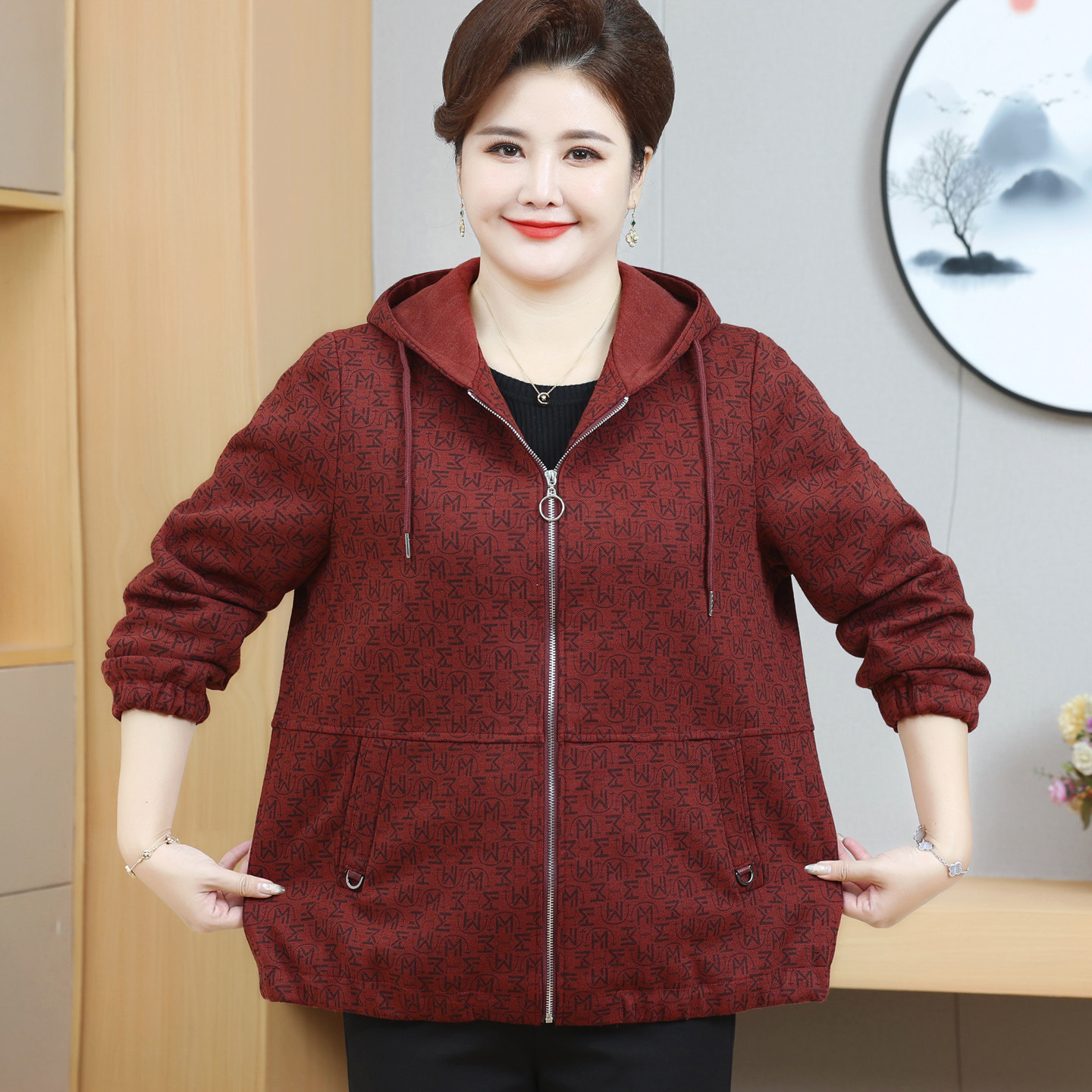连帽夹克上衣洋气 200斤胖妈妈装 中老年女装 春秋外套加肥加大码