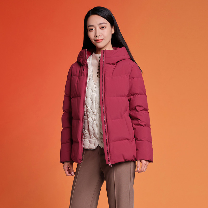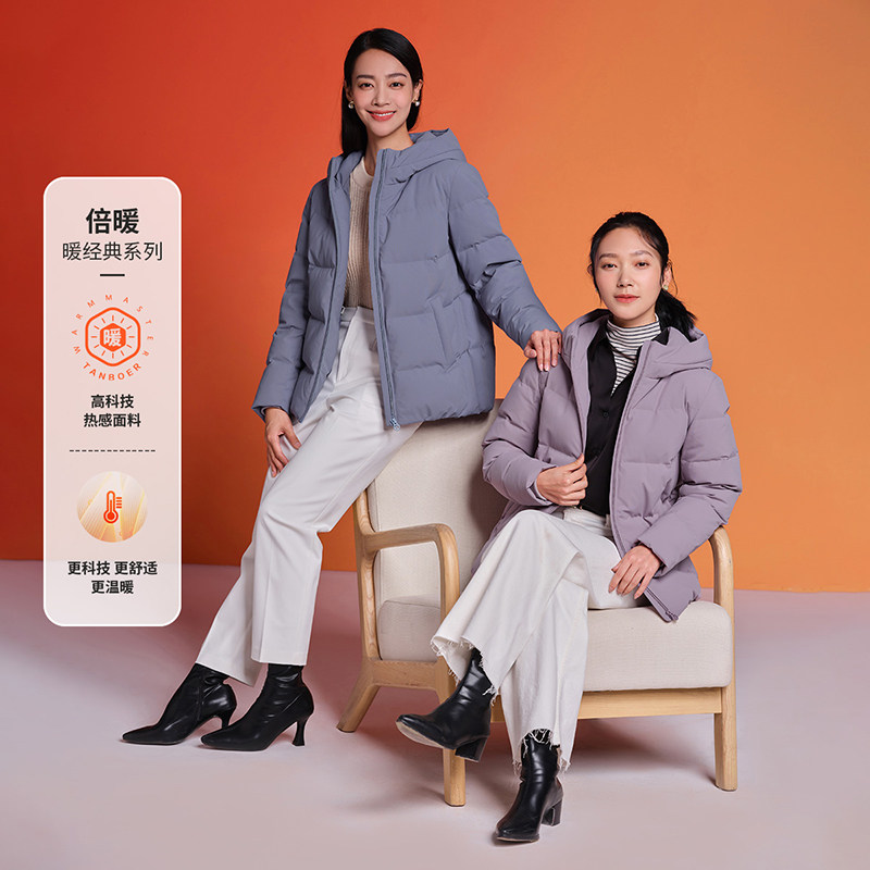 冬装 连帽妈妈款 宽松保暖外套 中老年新年红羽绒服女短款 坦博尔新款